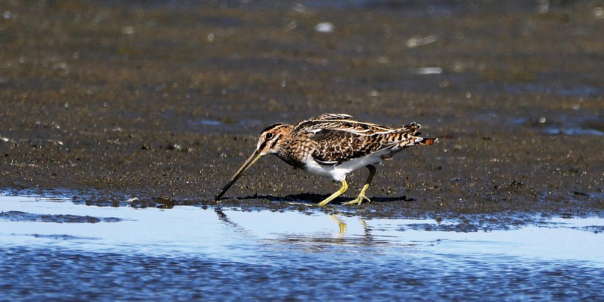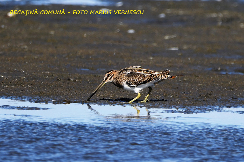 Becațină comună (Gallinago gallinago) - Cuibărește în mlaștini și zone umede, deseori pe marginea lacurilor și a râurilor. Iarna stă în zone de coastă sau mlăștinoase. Părțile superioare sunt de culoare maronie cu pete mai deschise la culoare, părțile inferioare sunt de culori palide, cu dungi negre pe piept, iar banda de la ochi este întunecată și mărginită de două benzi mai deschise. Picioare scurte, aripi lungi, iar ciocul distinctiv este alungit mult. Masculul seamănă foarte bine cu femela, deși ea are ciocul puțin mai lung. Lungimea corpului este de 25-27 cm, anvergura de 44-47 cm, masa medie corporală de 110 g. Se hrănește cu nevertebrate și plante. În libertate, longevitatea medie este de trei ani.