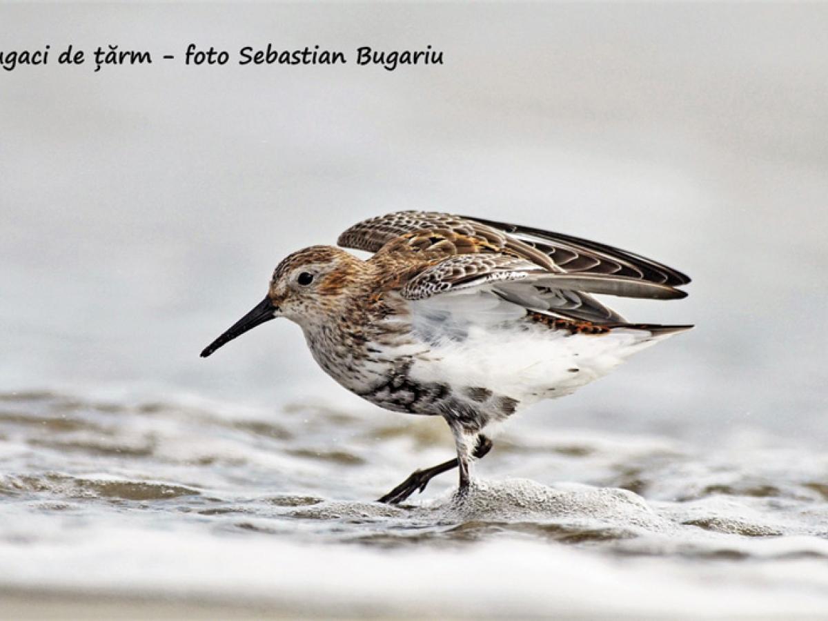 Fugaci de țărm (Calidris alpina) - Fugaciul de țărm este o specie caracteristică zonelor de tundră, cu pajiști umede și lacuri cu apă salmastră și sărată. În timpul migrației și în cartierele de iernare apare în zonele lagunare și costiere cu apă salmastră sau sărată. Adulții au înfățișare similară, masculul având culorile penajului mai intense. Spatele și capul au o culoare ruginie, iar abdomenul negru. Se hrănește cu insecte și larvele acestora, viermi, melci, resturi vegetale și peștisori.