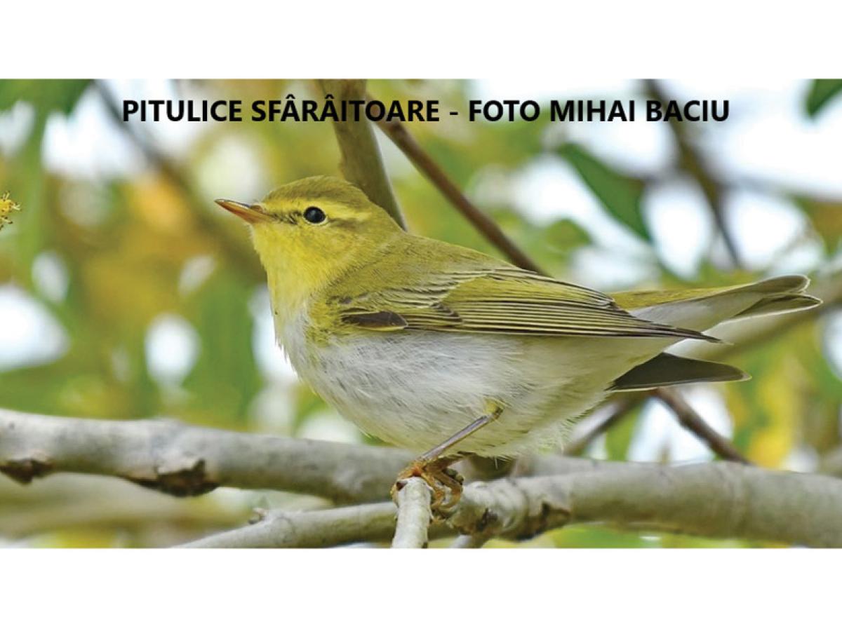 Pitulice sfârâitoare (Phylloscopus sibilatrix) - Trăiește în păduri de foioase, fără subarboret. Părțile superioare sunt verzui, are gâtul de culoare galbenă, ca și partea superioară a pieptului. Părțile inferioare sunt de culoare albă. Coada este scurtă. Lungimea corpului este de 11-12,5 cm, anvergura de 20-24 cm, masa corporală medie de 10 g.