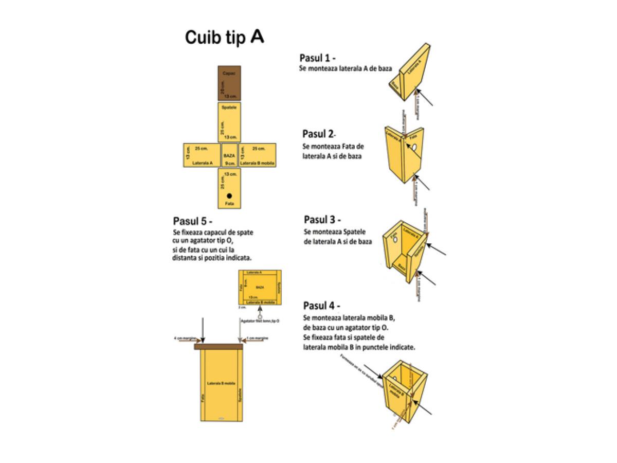 - Este foarte important să menținem materialul și dimensiunile potrivite pentru speciile vizate. Aceste informații (materialul și dimensiunea) se bazează pe mai mulți ani de cercetări și observații din partea ornitologilor, pentru a găsi varianta cea mai potrivită și eficientă, de a înlocui fisuri, scorburi sau mici orificii naturale care sunt folosite de către speciile de păsări sălbatice.
