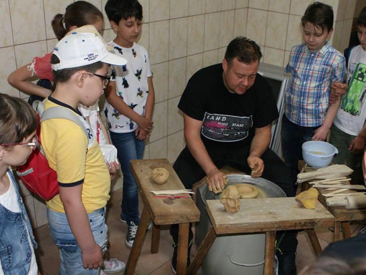 Lucrările realizate împreună cu copiii trebuia lăsate printre cărămizi timp de trei zile, în cuptoarele de tip “dragon”. După cum ne-a explicat domnul profesor, focul se făcea sus, iar cărămizile erau jos în trei camere de ardere. Ca materie primă se folosea pământul galben din mal şi clisă din baltă. Asta deoarece pământul galben simplu este prea nisipos, iar la ardere elimină apa prea repede şi se crapă.