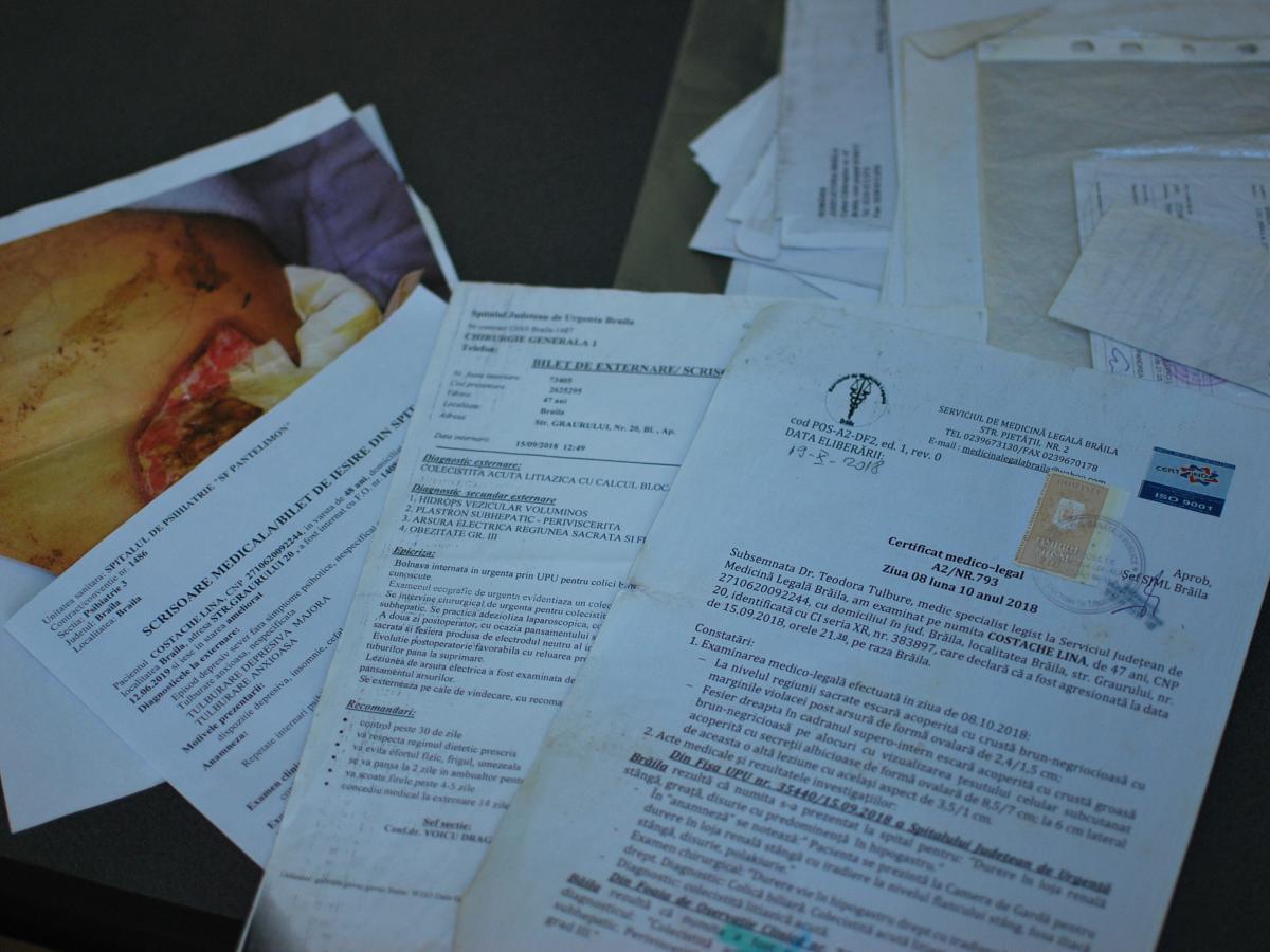 Toată această poveste îşi are începutul pe 15 septembrie 2018, când Lina Costache, o croitorească din Brăila, a fost internată la Spitalul Judeţean de Urgenţă Brăila, pentru o operaţie de colecist. Potrivit documentelor medicale puse la dispoziţie cotidanului “Obiectiv-Vocea Brăilei” chiar de persoana în cauză, reiese că pacienta a fost internată cu diagnosticul “colecistită acută litiazică acută”, pentru ca în fişa de externare a pacientei, să mai apară şi alte diagnostice secundare precum hidrops vezicular voluminos, plastron subhepatic-periviscerită, arsură electrică regiunea sacrată şi fesieră şi obezitate gradul III. De asemenea, potrivit epicrizei, bolnava a fost internată în urgenţă, prin UPU pentru colici biliare intense. Astfel, la examenul ecografic de urgenţă s-a evidenţiat un colecist mare, hidropic, cu pereţi îngroşaţi, locuit de calculi. “Se intervine chirurgical şi se practică adezioliza laparoscopică, colecistectomie bipolară laparoscopică şi drenaj peritoneal multiplu. A doua zi, postoperator, cu ocazia pansamentului se constată prezenţa unei arsuri parcelare de natură electrică sacrată şi fesieră produsă de electrodul neutru al instalaţiei de laparoscopie”. O intervenţie, care, potrivit fişei pacientei, a avut o evoluţie postoperatorie favorabilă. Asta după ce, aceeaşi pacientă a suferit o arsură postoperatorie, care a fost examinată de un medic specialist de chirurgie plastică, şi i s-a asigurat acesteia pansamentul zilnic al arsurilor, fiind externată pe 22 septembrie 2018, “pe cale de vindecare, cu recomandări”. Cu toate acestea, femeia acuză aceleaşi dureri în zona arsurilor şi a decis realizarea unui examen la Institutul de Medicină Legală (IML). După cum se arată în certificatul medico-legal, reclamanta prezintă leziuni care s-au putut produce prin contact cu un corp fierbinte. De asemenea, în acelaşi raport se mai arată că a fost vorba despre leziuni care necesită 24-26 de zile de îngrijire medicală. Numai că după o lună de zile de la intervenţia chirurgicală laparoscopică, femeia a fost din nou internată la SJU Brăila şi a fost supusă unei alte operaţii chirugicale. “După operaţie, în Terapie Intensivă, m-am trezit arsă, efectiv. Cămaşa de noapte era arsă pe mine. Au venit două infirmiere, au chemat şi asistentele să vadă, m-au dezbrăcat, s-au speriat şi dânsele. M-au pansat şi mi-au făcut o injecţie de durere. După aproximativ o lună de zile, m-a operat iar, că a trebuit să-mi scoată coaja, ţesutul ars şi m-a operat. Şi uite aşa mă chinui de atunci. M-a operat pe viu pentru că nu a mai putut să-mi facă anestezie. Sunt varză! Pe timpul spitalizării când mă plângeam că am dureri, spuneau că mă prefac şi că nu m-ar durea atât de tare. Când eu aveam carne vie. Am avut arsuri de gradul II şi III . Păi, când a văzut nora mea cum arătam după operaţie, cu cămaşa de spital arsă, fata a leşinat (...) Şi acum mă simt rău tare, mi-au scos ţesutul ars, că era destul de mare şi m-au cusut ca pe sac. Am dureri şi acum. Mi s-au dat concedii medicale cât le-a permis legea şi apoi dânşii mi-au zis că nu-mi mai pot da altele, pe când eu am stat 3 luni acasă. Am încercat să merg la serviciu după concediile medicale, şi nu pot să mai stau în poziţia de şezut”, a declarat fosta pacientă a Spitalului Judeţean de Urgenţă Brăila, Lina Costache. Din cauza acestor probleme, mai spune femeia, şi-a pierdut şi locul de muncă, pentru că durerile nu-i mai permiteau să mai lucreze în aceeaşi poziţie, la serviciu, aşa că şi-a dat demisia şi nu mai lucrează din luna iunie a acestui an.