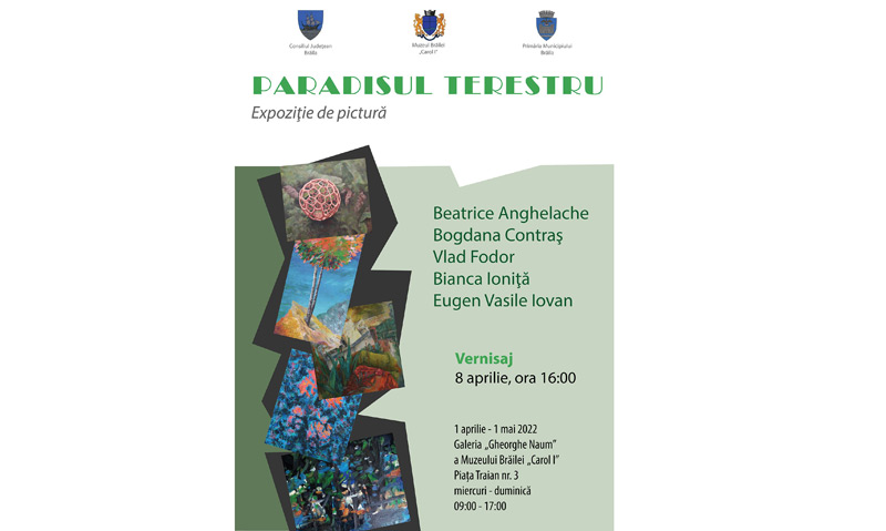 Vineri, 8 aprilie, a avut loc vernisajul expoziției de pictură intitulată "Paradisul terestru". La evenimentul găzduit de Galeria "Gheorghe Naum" a Muzeului Brăilei "Carol I" (Piața Traian nr. 3, intrarea prin Calea Galați) au participat artiștii expozanți: Beatrice Anghelache, Bogdana Contraș, Vlad Fodor, Bianca Ioniță și Eugen Vasile Iovan.