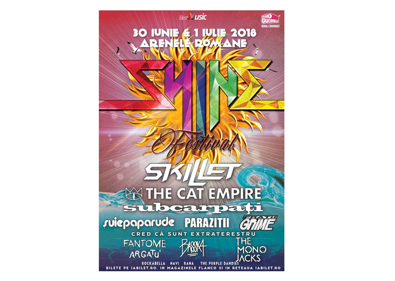 Ediţia a 5-a a Shine Festival va avea lor pe 30 iunie - 1 iulie la Arenele Romane din Bucureşti. Este “cel mai fresh festival al anului”, după cum îl recomandă organizatorii. Potrivit acestora, lineup-ul final al evenimentului este următorul: Paraziţii, Rockabella, Navi, Rana şi The Purple Dandies vor cânta alături de Skillet, The Cat Empire, Subcarpaţi, Fraţii Grime, The Mono Jacks, Cred Că Sunt Extraterestru, Fantome şi Argatu. O altă veste bună vine din partea familiei “Culese din cartier”. Prima zi de Shine Festival va fi aproape în totalitate dedicată “Sărbătorii de vară” Subcarpaţi aşa că publicul prezent se poate aştepta la multe surprize. Tot atunci vor cânta şi Paraziţii. Organizatorii au mai anunţat că în a doua zi de festival hedlineri vor fi Skillet şi The Cat Empire. Programul pe zile va fi disponibil în curând.