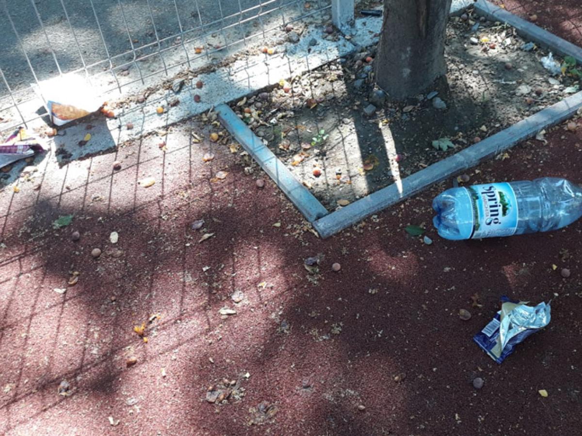 • resturi aruncate pe jos într-un spaţiu public destinat copiilor • în ciuda prezenţei camerelor de supraveghere, atitudinea unor cetăţeni rămâne mult sub limita bunului simţ