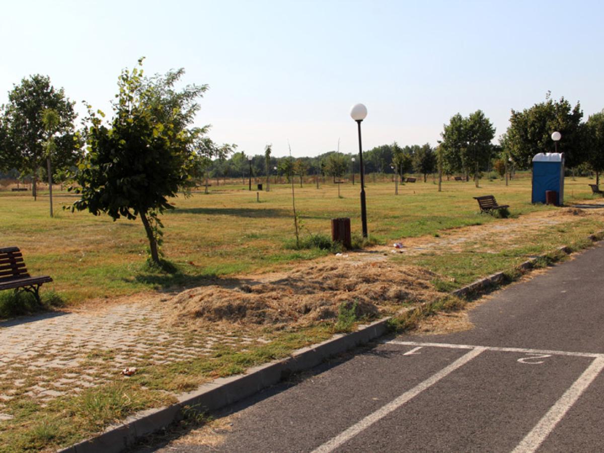 * la 10 ani de la inaugurare, parcul amenajat cu alei în mijlocul câmpului de la marginea Brăilei nu este folosit, practic, de nimeni * mobilierul stradal amplasat acolo s-a degradat sub privirile agenților de la Poliția Locală care păzesc locul pentru a preîntâmpina furturile * conducerea SUPAGL spune că până la sfârșitul acestui an se vor face minime lucrări de întreținere - vopsit stâlpi de iluminat, reparații bănci, cosit iarba și altele