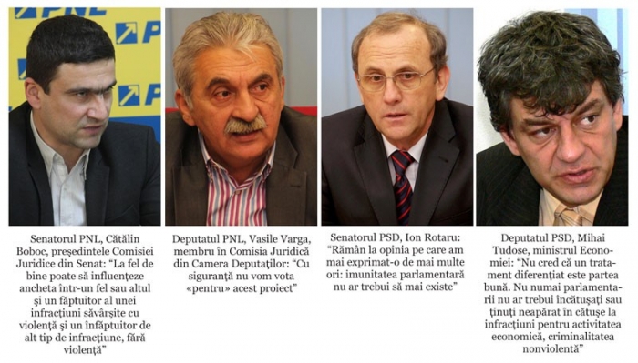 Întrebat în legătură cu acest subiect şi senatorul PSD Ion Rotaru s-a arătat destul de sigur în privinţa faptului că nu este de acord cu imunitatea parlamentară actuală şi toate tensiunile care au apărut în ultima vreme tocmai pe baza acestui subiect. "Eu nu am văzut proiectul, ştiu doar ce am citit din presă. Nu am avut timp să îl văd, am spicuit doar informaţii din ce s-a publicat. Rămân la opinia pe care am mai exprimat-o de mai multe ori: imunitatea parlamentară nu ar trebui să mai existe. Să se comporte şi parlamentarii ca simpli cetăţeni! Atunci nu mai avem discuţia asta şi am închis un subiect. Pe de altă parte, dacă se impune modificarea Codului Penal şi Codului de Procedură Penală suntem într-o ţară democratică în care legile trebuie să se schimbe în funcţie de nevoie, de oportunităţi şi de constatările care se fac în aplicarea lor pentru a fi modificate în contextul în care e nevoie de acest lucru. Vom vedea ce decizie se ia", a conchis Rotaru.