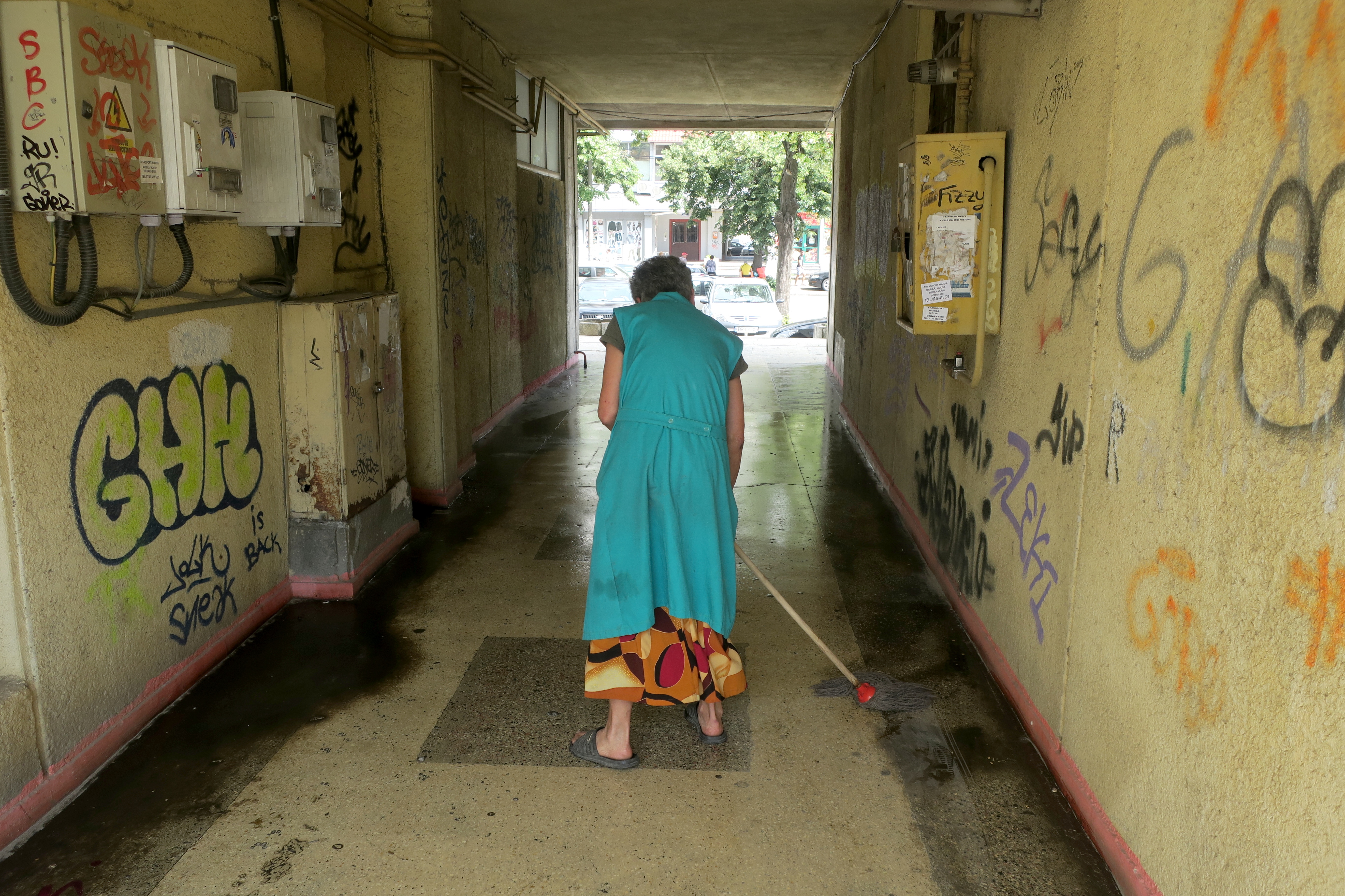 Pasajul care face legătura între curtea interioară a blocului B34 şi strada 1 Decembrie 1918 este folosit ca WC public de mulţi indivizi certaţi cu bunul simţ, iar asta se simte în aer de la zeci de metri distanţă. Cei care se încumetă să-l tranziteze trebuie să-şi ţină respiraţia, în timp ce se concentrează să calce printre dârele de urină sau chiar printre fecalele ce-şi fac, totuşi, mai rar apariţia în peisaj. Se întâmplă aşa nu de ieri de azi ci de ani de zile, iar femeile de serviciu angajate de-a lungul timpului de asociaţia de proprietari din care face parte blocul în cauză trebuie, vrând-nevrând, să spele cât mai des posibil pereţii şi pardoseala tunelului. E o muncă de-a dreptul înjositoare, care într-un oraş cu un minim de civilizaţie nu şi-ar fi avut locul. La Brăila, însă, unde lipsa toaletelor publice este un fenomen ce persistă de ani de zile, situaţia de la blocul situat în zona Pieţei Mari reprezintă ceva intrat în banalul cotidian. La fel se întâmplă şi la blocul de vizavi, care are de asemenea un pasaj ce face legătura între strada 1 Decembrie 1918 şi curtea interioară. Nici pasaje similare ale unor blocuri situate în locuri mai centrale, cum ar fi cele de pe Calea Călăraşilor, zona Romarta Nou, nu sunt ferite de indivizii zoriţi de nevoi... E o mare doză de nesimţire în a-ţi face nevoile pe domeniul public dar, ce-i drept, nici nu prea sunt multe alternative civilizate. Cabinele de plastic montate pe post de toalete ecologice în câteva zone din municipiu sunt destinate, în general, doar taximetriştilor, restul cetăţenilor neavând altă posibilitate decât să se abţină până ajung acasă. Ceea ce, de exemplu, unui mare consumator de alcool - de care Brăila nu duce deloc lipsă în zilele noastre - nici nu-i va trece prin cap...