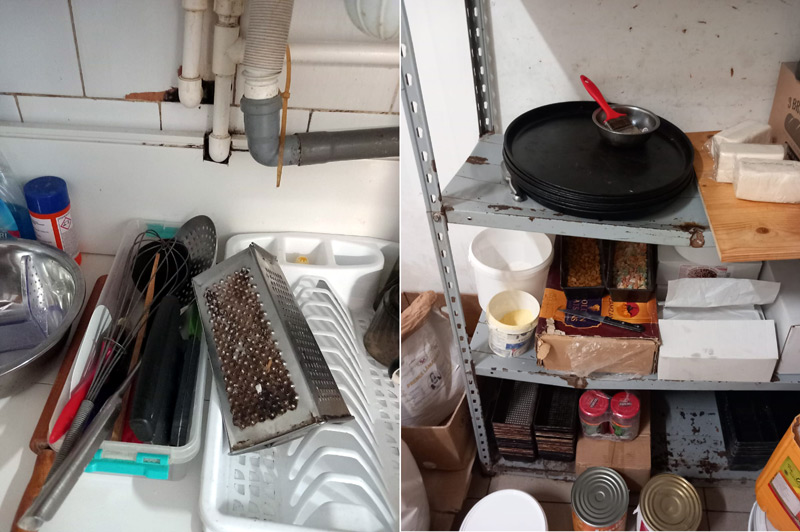 Pe lângă toate acestea, s-a constatat că, în etapele tehnologice de fabricare a produselor de patiserie, se utilizau ustensile neprofesionale (cuțite cu mâner din lemn și nituri de prindere; sucitoare și linguri din material lemnos; răzătoare ruginită), hotele cuptoarelor erau neigienizate, nu se monitorizau parametrii de microclimat pentru materiile prime uscate și materiile prime refrigerate și nici schimbul de ulei în friteuze, iar depozitarea materiilor prime refrigerate se realiza în agregate frigorifice pe grătare care prezentau zone extinse de rugină.