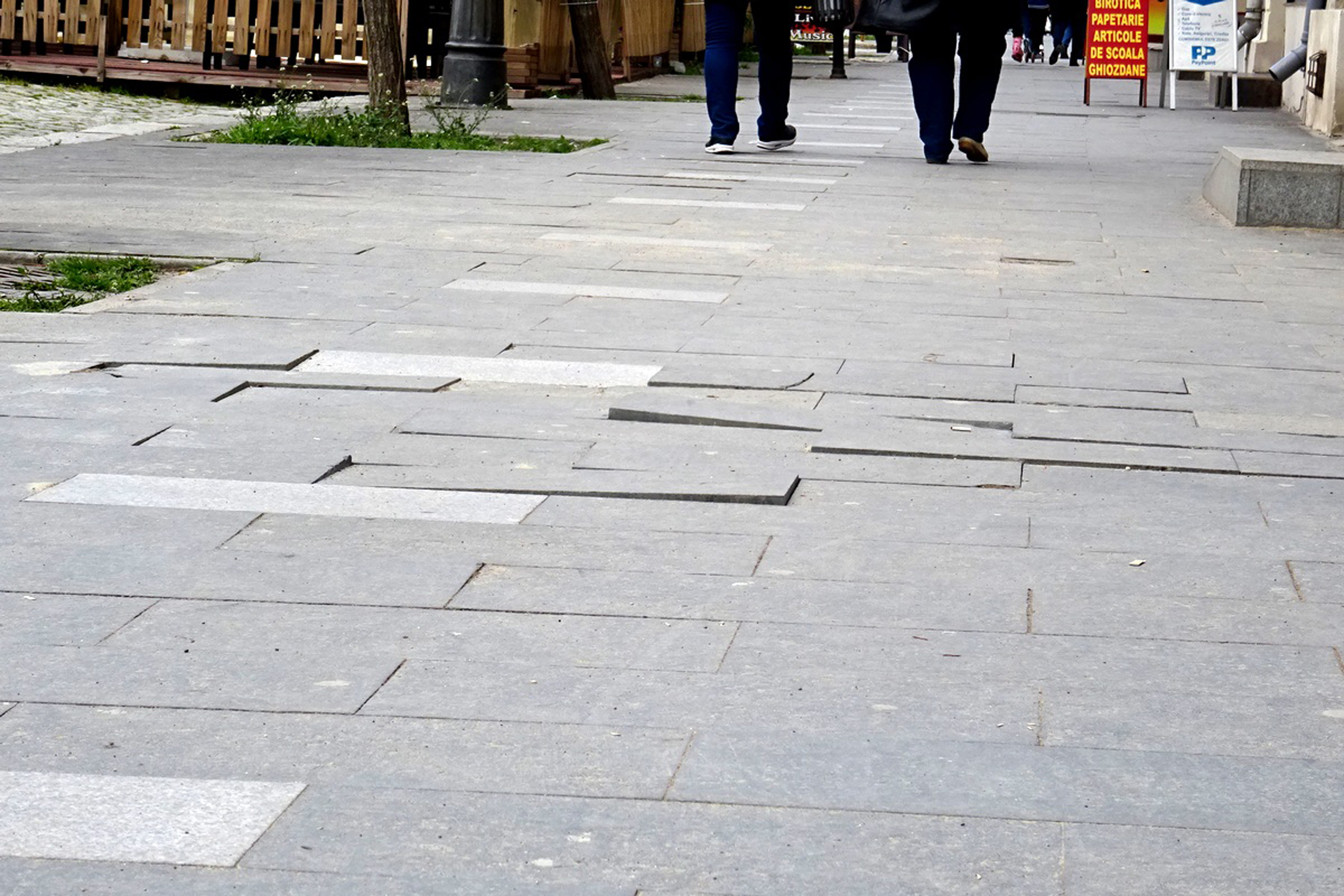 Fixarea pavelelor de pe trotuarul străzii Mihai Eminescu, astfel încât să nu se mai mişte sub picioarele trecătorilor, pare o misiune imposibilă. După cum prea bine se ştie, toţi brăilenii care au trecut prin zonă, în ultimii 4-5 ani, au observat cum, pe anumite porţiuni ale trotuarelor de pe ambele părţi ale străzii plăcile sunt dislocate şi clămpăne sub paşii trecătorilor. Mai mult, unele sunt poziţionate în aşa fel încât pietonii neatenţi riscă să se împiedice de ele, iar pe timp ploios apa adunată sub pavelele mişcătoare împroşcă în toate direcţiile. La începutul lunii aprilie se părea că, cel puţin pentru o perioadă, trecătorii nu se vor mai confrunta cu aceste neajunsuri. Asta după ce, în ultimele zile ale lunii martie, o echipă de muncitori a desfăcut toate pavelele cu probleme şi a refăcut patul de nisip de sub ele, astfel încât să poată fi fixate mai bine pe poziţie. Cotidianul nostru avertiza încă de atunci că soluţia aceasta este doar provizorie pentru că, în timp, este foarte posibil ca nisipul să se “spele” din nou, astfel încât plăcile de granit să înceapă iar să se mişte. Ceea ce anticipasem atunci s-a întâmplat după nici o lună de la acele reparaţii. Deja, plăcile de pe trotuare s-au dislocat şi sunt la fel de mobile, iar asta se întâmplă cu precădere în dreptul burlanelor, acolo unde curge foarte multă apă când plouă, afectând patul de nisip de dedesupt.