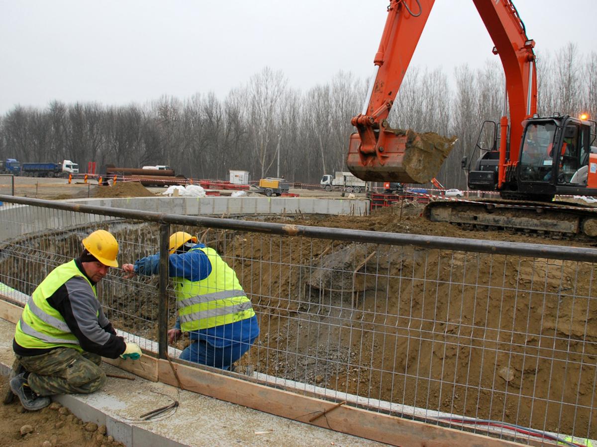 Pe şantierul deschis pe malul brăilean lucrează în prezent câteva zeci de muncitori. Lucrările sunt făcute de firma “Astaldi” însă, după cum se poate vedea pe şantier, majoritatea utilajelor folosite aparţin firmei “Tancrad” Galaţi. Cei de la “Astaldi” dau asigurări că lucrările nu au fost subcontractate către alte firme, procedându-se doar la închirierea unor utilaje de la diverşi parteneri. Din câte se pare, “Tancrad” este un partener de nădejde al constructorului italian care a câştigat licitaţia pentru construirea podului de la Brăila.