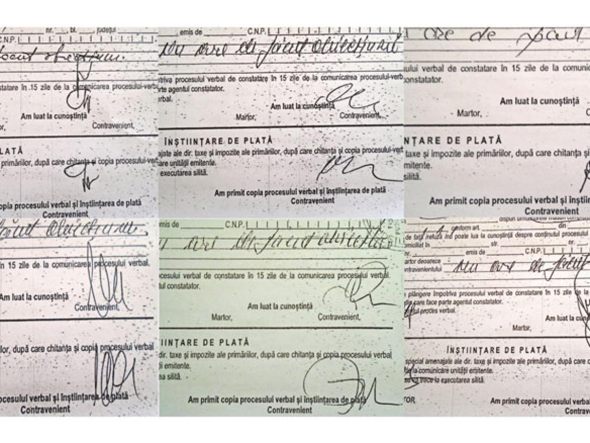 Caz stupefiant! Florin Răducanu, bolnav de oligofrenie gradul II încă din copilărie, cu pensie de handicap, care vinde ziare „Obiectiv – Vocea Brăilei” în baza unui contract de muncă cu normă redusă, este executat silit de Primăria Brăila, Direcţia Finanţelor Publice Locale, pentru uriaşa sumă de 13.840 lei, reprezentând amenzi neachitate către Poliţia municipiului, Poliţia locală şi Jandarmeria Brăila. Mai exact, în perioada 2009 – 2014, Poliţia municipiului Brăila i-a aplicat lui Răducanu nu mai puţin de 65 de amenzi, în sumă totală de 13.440 lei, Poliţia locală i-a dat o amendă de 100 lei, iar Jandarmeria tot una, în valoare de 300 lei. Stupefiant este şi pentru ce anume faptă a arătat atâta zel Poliţia municipiului Brăila: „Răducanu Florin a fost depistat apelând în mod repetat la mila publicului”, cam aşa sună descrierea pericolului public prin care agenţii constatatori ai Poliţiei municipiului stabileau amenzi între 100 şi 500 lei pentru cerşetorie. Unde cerşea Florinel, aşa cum îi spunem noi pentru că munceşte pentru ziarul „Obiectiv – Vocea Brăilei” de ani de zile? Fix în pieţele municipiului, adică, în general, în zonele unde vinde ziarul. Ceea ce este însă şi mai stupefiant este faptul că în cele 65 de procese verbale încheiate de diferiţi poliţişti, cu 3-4 excepţii, restul semnăturilor nu seamănă una cu alta în dreptul contravenientului. Nu mai spunem că sunt şi situaţii în care pur şi simplu documentele nu sunt semnate. Iar semnăturile falsificate se văd de la o poştă că nu sunt ale unui oligofren. De altfel, Florinel ne-a dat la redacţie un specimen de semnătură şi orice ochi, chiar şi unul neavizat, se poate convinge de „făcăturile” din procesele verbale ale Poliţiei municipiului.