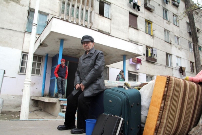 Necazurile lui Roşca Nicodim au început în urmă cu un an, odată cu decesul soţiei sale. L-am găsit pe aleea din faţa blocului G13, lângă bagajele sale. O saltea, câteva pături şi trei trolere. Cam asta era toată averea lui, după ce a muncit o viaţă întreagă. Lacrimile i s-au înnodat în barbă când a început să ne povestească drama prin care trece de câteva luni, şi, mai ales, de când a ajuns să locuiască într-una din locuinţele fără electricitate, fără apă sau căldură din G13. Şi parcă vremea de afară era la unison cu dânsul. Picura mărunt. Privea în gol, iar speranţa de mai bine fugise ca la maraton din sufletul său.