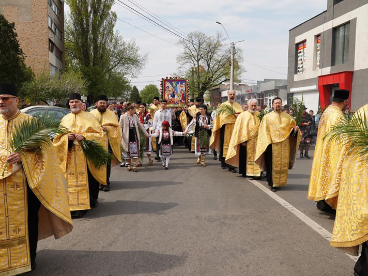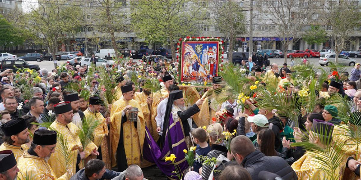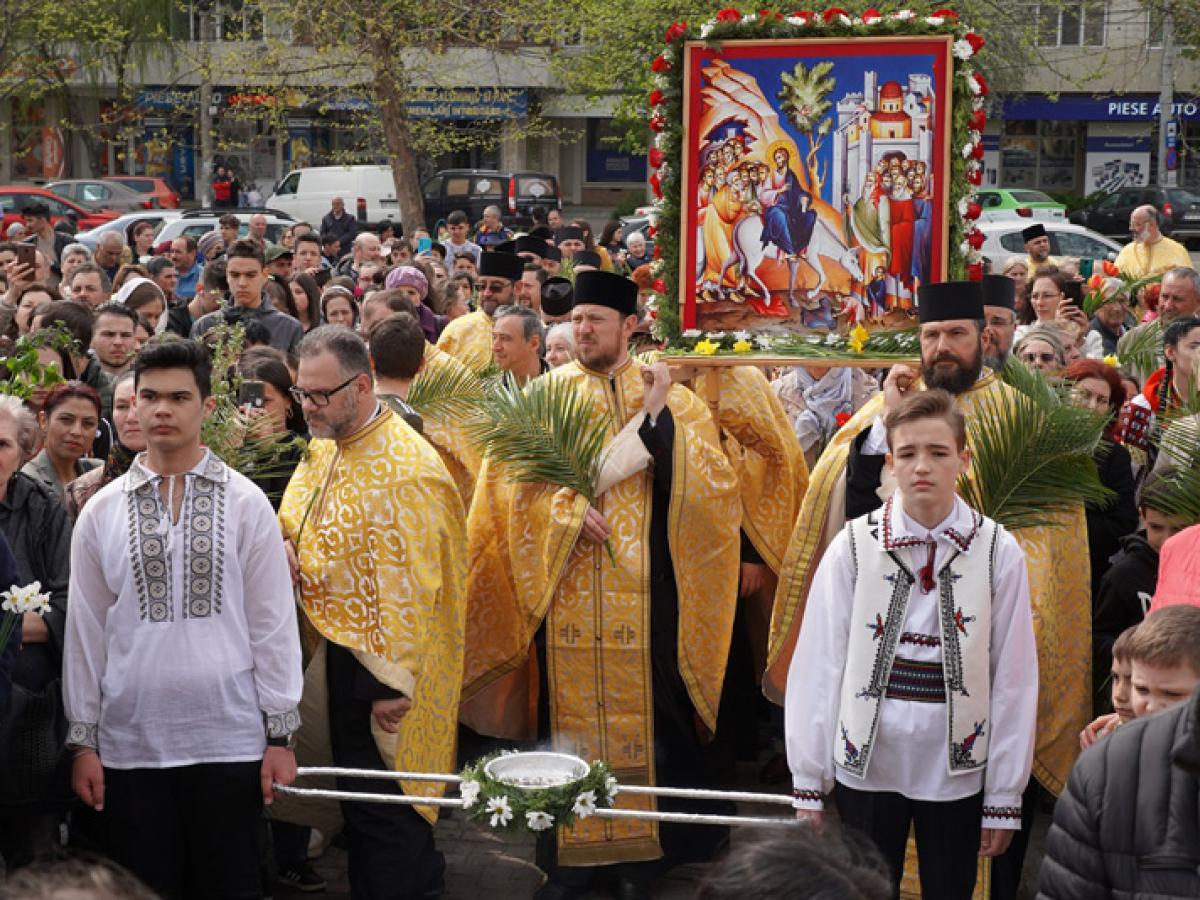 Totodată, în Duminica Floriilor, Înaltpreasfințitul Părinte Casian a oficiat Sfânta Liturghie în Catedrala "Sf. Apostol Andrei și Sf. Ierarh Nicolae", din orașul vecin, la slujbă fiind prezenți numeroși credincioși, precum și corul Catedralei Arhiepiscopale. Înaltpreasfinția Sa le-a vorbit credincioșilor despre sărbătoarea Intrării Domnului în Ierusalim, ca mod de pregătire a credincioșilor pentru săptămâna Sfintelor Pătimiri și Marele Praznic al Învierii Mântuitorului nostru Iisus Hristos.