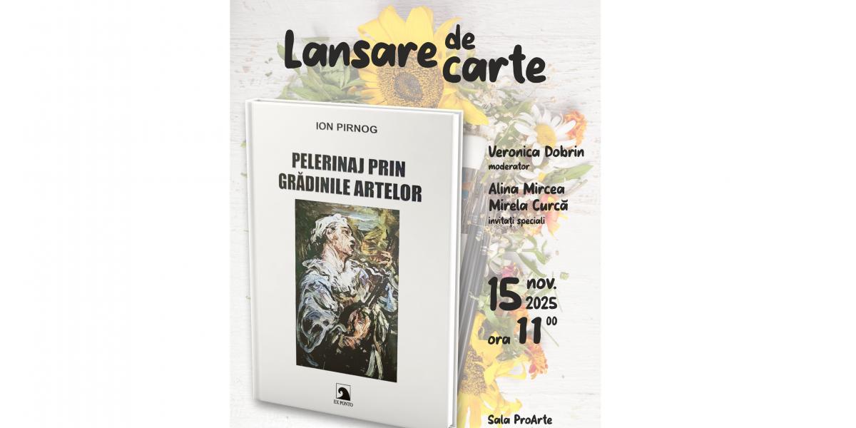 Consiliul Județean Brăila și Centrul Județean pentru Conservarea și Promovarea Culturii Tradiționale, cu sprijinul Primăriei Municipiului Brăila, îi invită pe pasionații de literatură, artă și frumos la lansarea volumului „Pelerinaj prin grădinile artelor”, de Ion Pirnog, apărut la Editura Ex Ponto - o abordare analitică și eseistică asupra diverselor forme de artă. Evenimentul va avea loc sâmbătă, 15 noiembrie, de la ora 11:00, la Sala ProArte a CJCPCT Brăila.