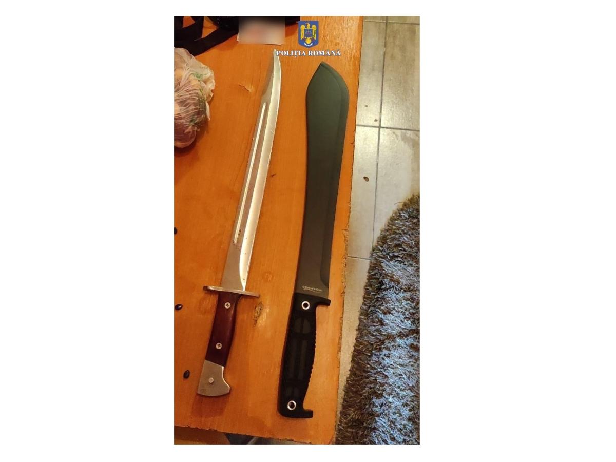 Pistol neletal, bile metalice și cuțite tip macetă găsite de polițiști în casele unor brăileni.