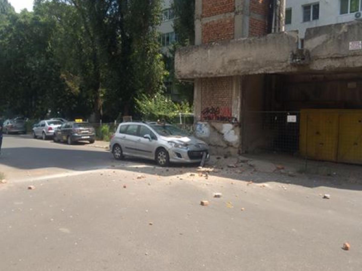 * înainte ca autoritățile locale să reușească să pună la pământ fostele centrale termice, acestea se pare că se prăbușesc natural * vineri, la amiază, mai multe cărămizi au căzut pe capota unei mașini parcate pe strada Ghioceilor, sub turnul centralei