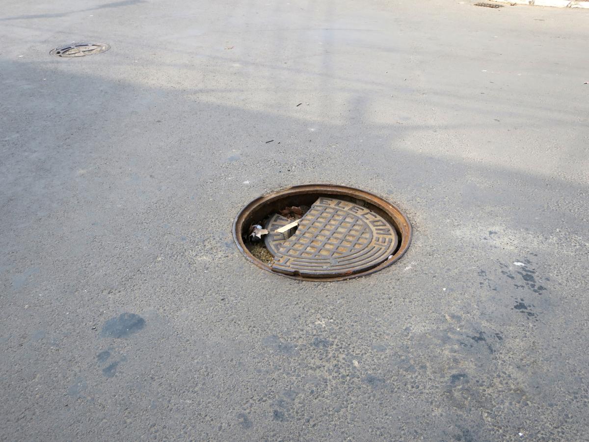 * capacul de fontă care acoperă un cămin de vizitare pentru rețeaua subterană de cabluri de comunicații stă spart de mai bine de două săptămâni * căminul în cauză este situat pe carosabil, iar un moment de neatenție din partea unui șofer ar putea duce la un grav accident de circulație * Primăria susține că nimeni nu a sesizat oficial existența problemei * prin zonă circulă frecvent mașini de poliție