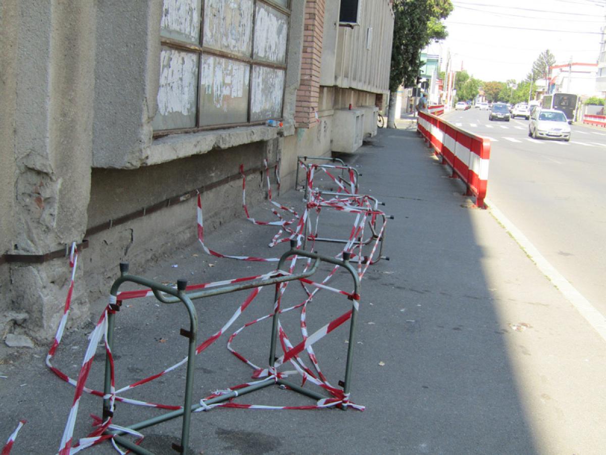 De circa două luni, pe trotuarul din dreptul clădirii Braiconf, latura dinspre strada Griviței, e blocat cu câteva cadre metalice și benzi din plastic care delimitează un perimetru posibil cu risc de accidentare a celor care circulă pe aici. Trotuarul a fost inițial blocat pe circa trei sferturi din lățimea lui, iar unele persoane deranjate de aspectul amintit au tot mutat și răvășit mijloacele de semnalizare, până spre zidul clădirii. Toată lumea se întreabă cât va mai dura acest inconvenient, motivul pentru care s-a luat această măsură fiind o necunoscută pentru pietoni, care nu pot decât să-și dea cu presupusul. “Uite, sus acolo, un glaf exterior, de la etajul 3-4 al peretelui din sticlă, stă gata - gata să cadă“, spun unii. Cert este că tabla care pare să fi cauzat măsura de precauție poate reprezenta într-adevăr un pericol atât pentru pietoni cât și pentru mașinile din trafic. O rafală mai puternică de vânt ar putea să o smulgă și să o arunce la pământ... Problema este că timpul trece și nimeni nu pare să facă ceva concret în această privință.