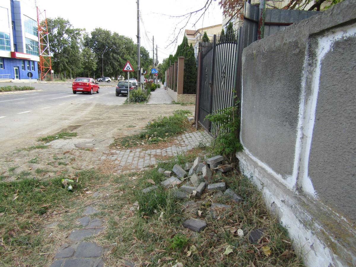 * una dintre principalele căi de acces spre malul Dunării a ajuns plină de capcane, pe trotuare și carosabil