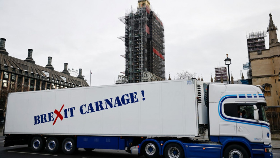 Zeci de camioane cu marfă au fost parcate în fața reședinței lui Boris Johnson în semn de protest. Le aparțin celor care cred că acordul post-Brexit încheiat cu UE este în defavoarea micilor afaceri din Regat. Cei mai supărați, pescarii scoțieni, amenință că data viitoare vor descărca pește stricat la ușa premierului.