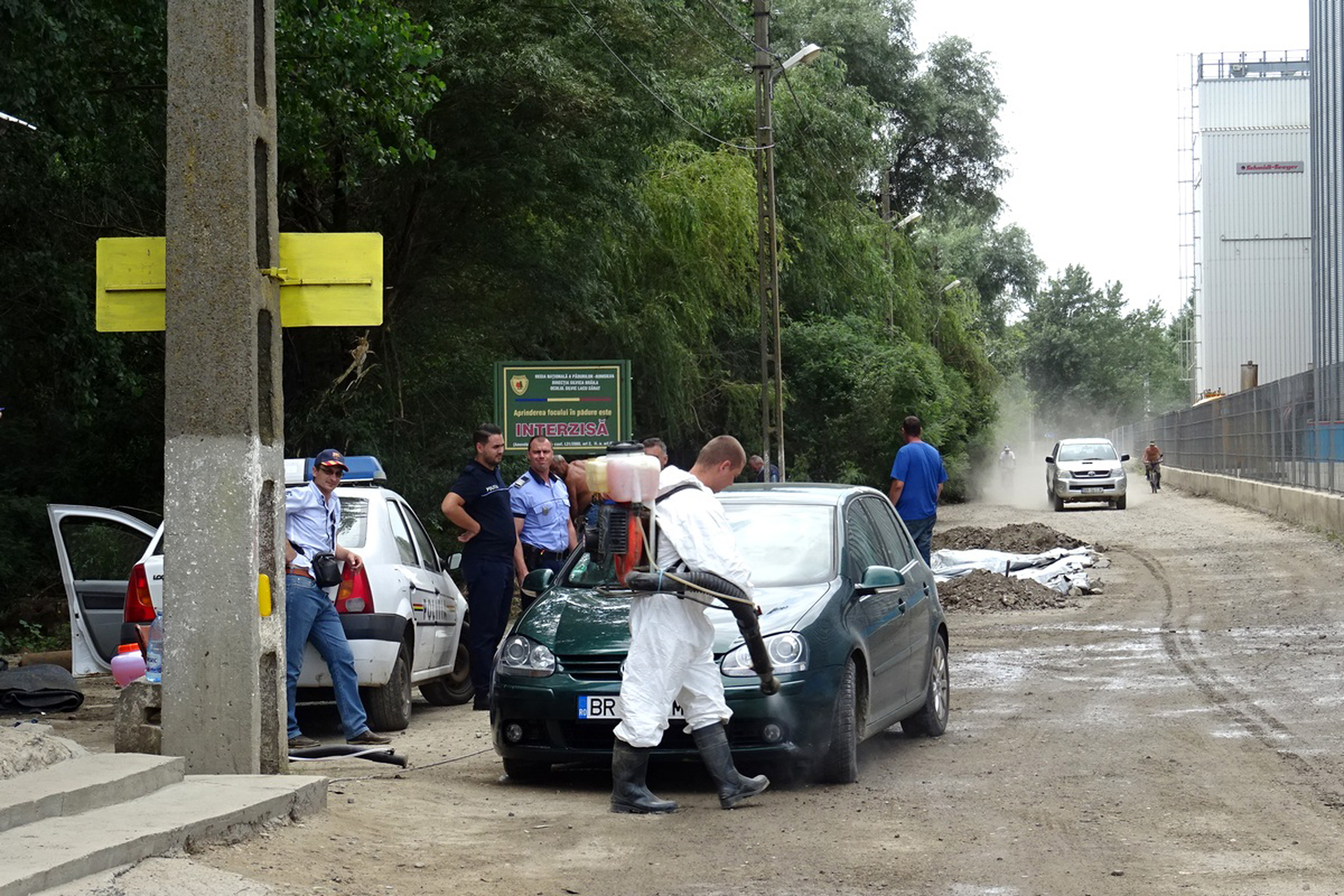 După cum se ştie, pesta porcină africană a fost depistată, în urmă cu circa două săptămâni, într-o crescătorie de porci de pe teritoriul judeţului Tulcea. Şi autorităţile din judeţul vecin au luat măsuri pentru dezinfectarea autoturismelor care trec cu bacul spre judeţul nostru. Astfel, pe drumul dintre Măcin şi Smârdan, la circa 3 kilometri de intrarea în Smârdan, au fost montate pe carosabil două fâşii de material absorbant care este îmbibat periodic cu soluţie dezinfectantă.