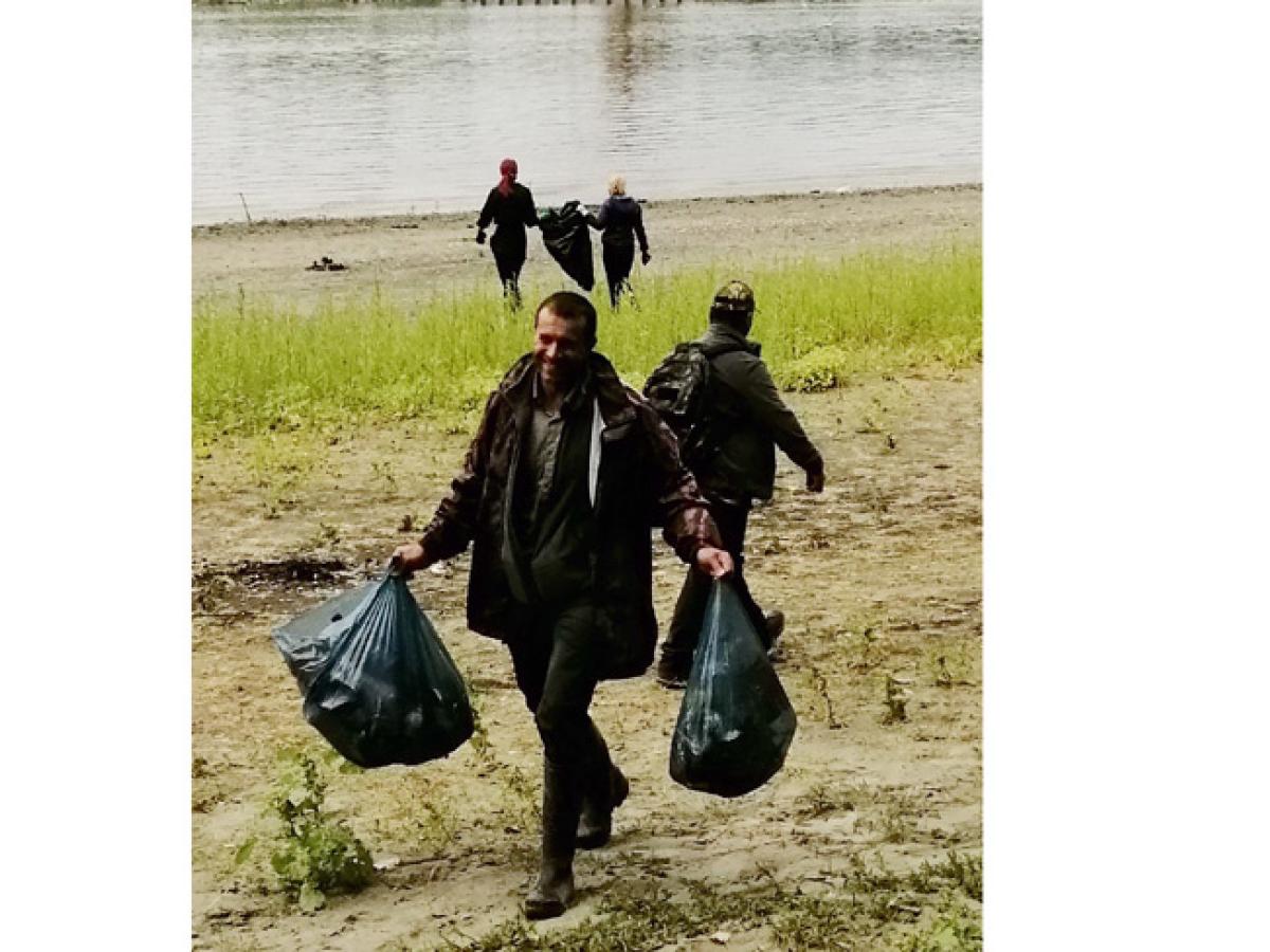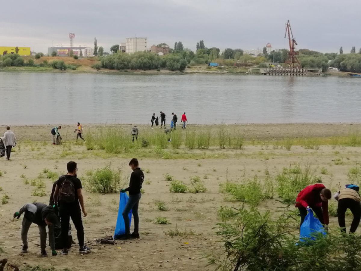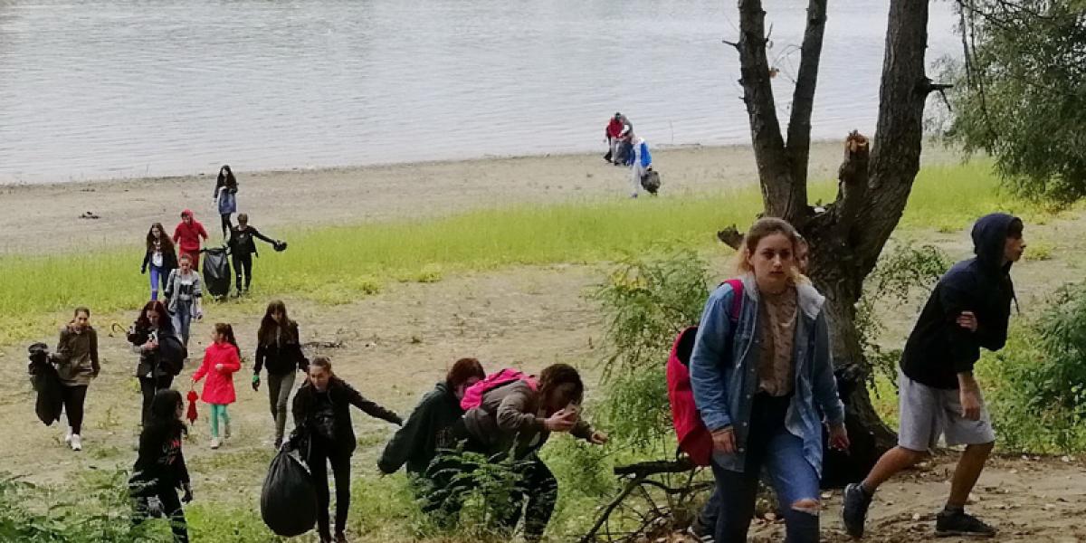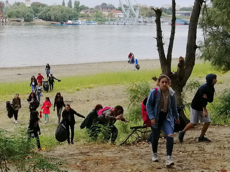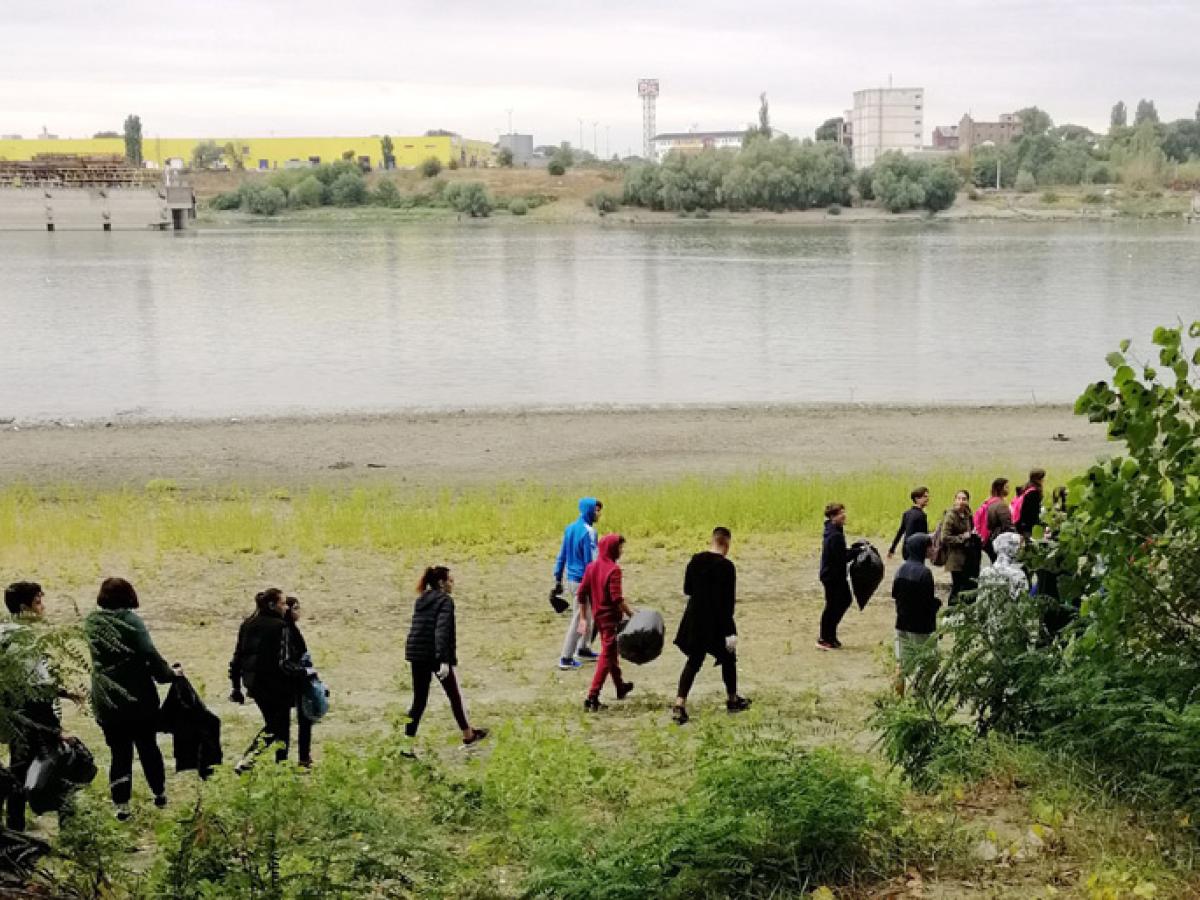 • li s-au alăturat silvicultori şi jandarmi brăileni, care au adunat, împreună, două tone de deşeuri aruncate de cei care au sosit astă-vară la plajă • liceenii au stat mai bine de două ore în frig şi în ploaie, după ce au traversat Dunărea cu bacul