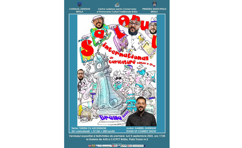 Luni, 5 septembrie, de la ora 17.05, la Galeria de Artă din Piața Traian nr. 2, are loc vernisajul expoziției și festivitatea de premiere a celor mai bune lucrări trimise la ediția 2022 a Salonului Internațional de Caricatură de la Brăila, organizat de Centrul Județean pentru Conservarea și Promovarea Culturii Tradiționale Brăila (Centrul de Creație) în colaborare cu Consiliul Județean și Primăria Municipiului Brăila. Tot luni, cu ocazia festivității de premiere, brăilenii prezenți la eveniment îl vor putea vedea în carne și oase pe Gabriel Gherghe, care va susține un Stand up Comedy Show.