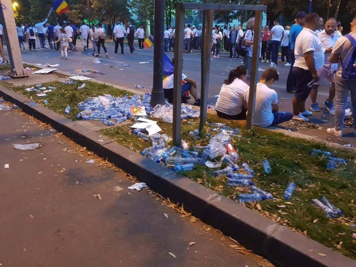 “Din păcate aşa se întâmplă peste tot la manifestări de genul ăsta. Acolo a fost ceva mai înainte, din câte am înţeles şi o altă manifestaţie. Cel puţin când am ajuns noi în Piaţă era deja o multitudine de sticle de apă şi gunoaie aruncate. Iar noi am ajuns printre primii. Dar asta nu înseamnă că cei de la mitingul PSD nu au făcut aceeaşi chestie. E ceva ce ţine până la urmă de simţul civic, de respectul pe care trebuie să îl avem unii faţă de alţii. S-a făcut gunoi, se face curat. Asta este”, a declarat Rotaru.