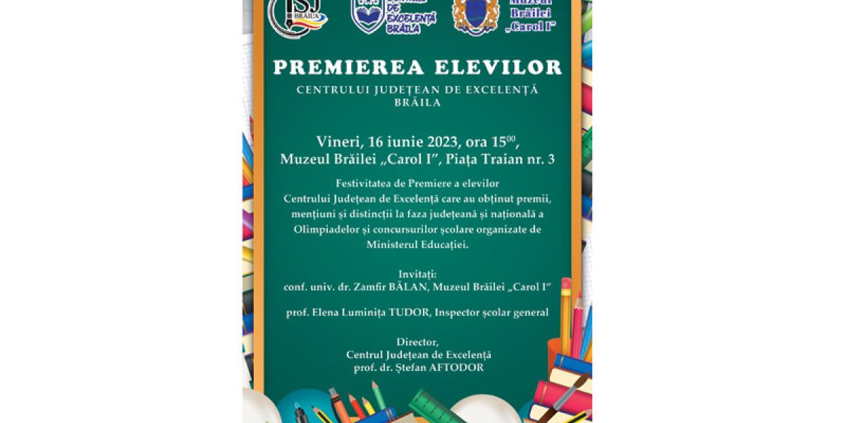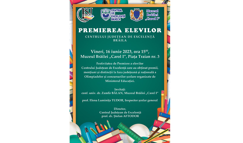 „În cel de-al doilea an al existenței sale (după noua organizare a centrelor de excelență, stabilită prin ordin al Ministrului Educației, în anul 2020), Centrul Județean de Excelență Brăila îi premiază pe elevii care au frecventat unul din cursurile sale și care au obținut rezultate notabile la olimpiade și concursuri școlare. Peste 300 de elevi au urmat cursurile celor 12 discipline ale Centrului Județean de Excelență în anul școlar 2022-2023, iar vineri, 16 iunie, peste 70 dintre ei vor primi diplome, medalii și cărți pentru premiile obținute la fazele județeană și națională ale olimpiadelor și concursurilor școlare”, a precizat dr. Ștefan Aftodor, directorul CJE Brăila.