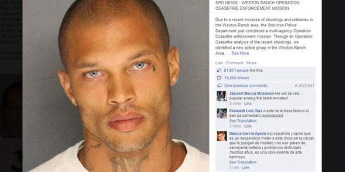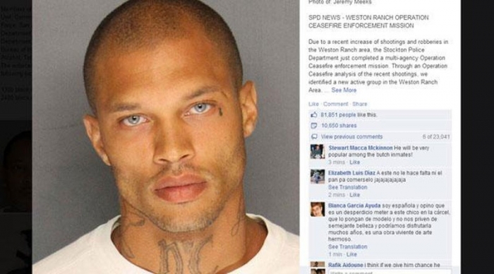 Jeremy Meeks, devenit celebru după ce poliţia din Stockton (nordul Californiei) i-au publicat fotografia în urma operaţiunii desfăşurată la 18 iunie care a dus la arestarea sa şi a altor indivizi implicaţi în spargeri, riscă ani de grei de închisoare, ceea ce va provoca furia fanelor sale de pe reţeaua de socializare Facebook. Un întreg grup de susţinere s-a format pentru a îndupleca o decizie mai blândă a instanţei, însă cazul a fost transferat la o curte federală.