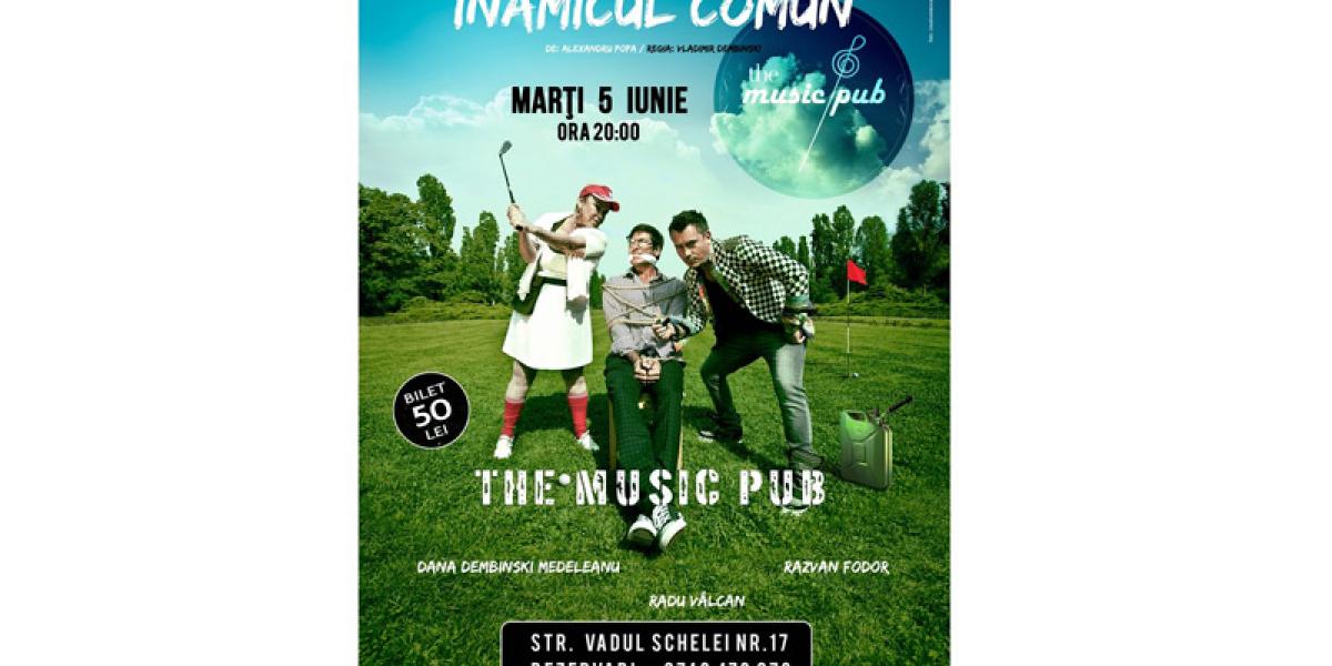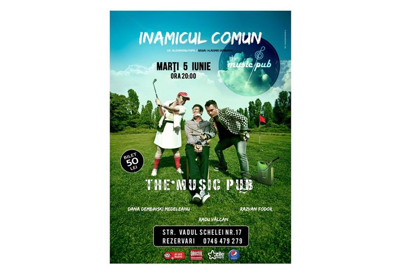 • este vorba despre comedia “Inamicul Comun”, în regia lui Vladimir Dembinsky, ce se va juca, începând cu ora 20:00, pe scena terasei de lângă Patinoar • piesa are o distribuţie de excepţie: Dana Dembinsky Medeleanu, Radu Valcan şi Răzvan Fodor • show-urile se vor ţine lanţ în această vară la The Music Pub: piese de teatru, Stand Up Comedy şi multă muzică live
