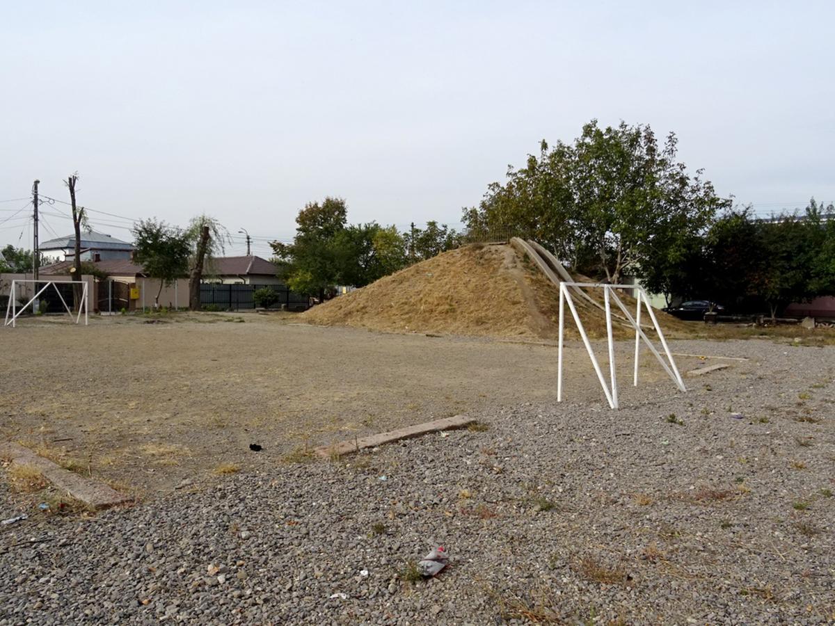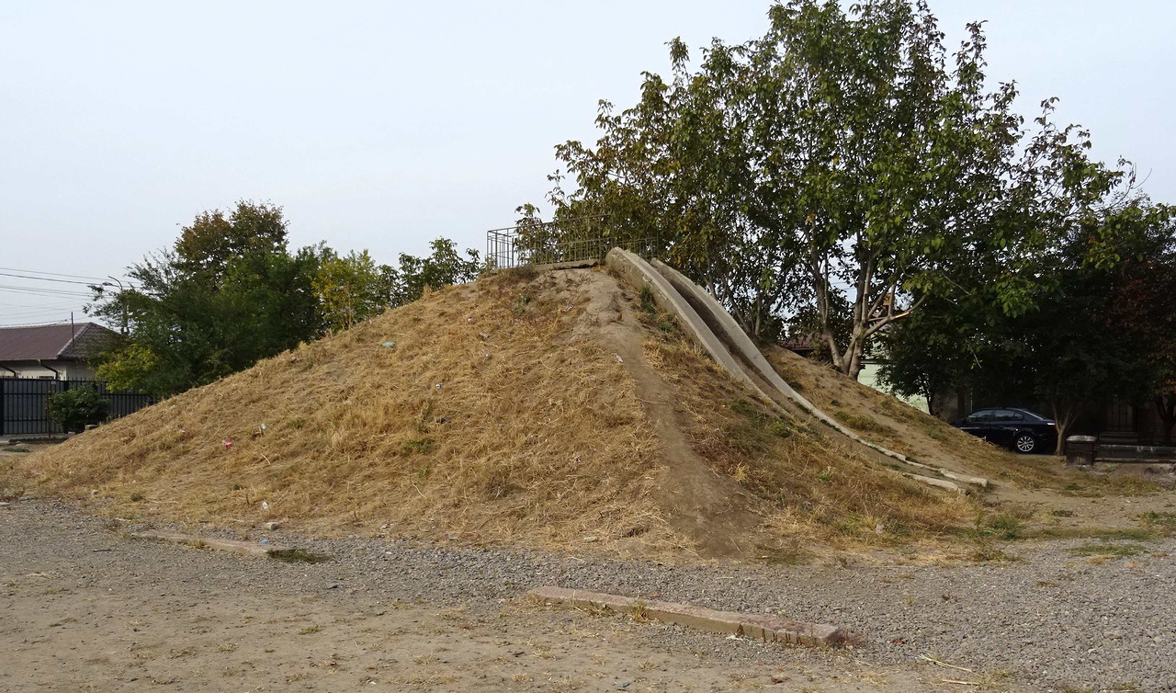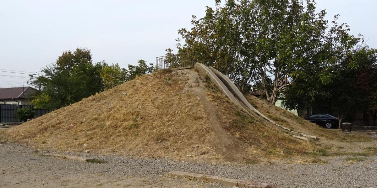 Piramida de pământ înălţată în jurul unui tobogan uriaş, la iniţiativa unor studenţi norvegieni, într-un fost parc de joacă din cartierul Chercea, nu are un aspect tocmai plăcut zilele acestea. Asta deoarece nimeni un pare să se fi obosit, pe pacursul verii, să tundă şi să întreţină vegetaţia plantată în primăvară pe toate cele patru laturi ale sale. Iarba respectivă, care între timp căpătase aspect de tufiş netuns, deja s-a uscat, iar acum arată ca un maidan pe verticală, pe care au început să apară şi diverse gunoaie aruncate de rezidenţii zonei. În proiectul gândit de studenţii norvegieni, piramida de pământ ar fi trebuit să fie o pată verde care să revigoreze aspectul cenuşiu al zonei. Însă, ca să se întâmple aşa, iarba ar fi trebuit tunsă şi udată constant, aspect complet neglijat de autorităţile locale.