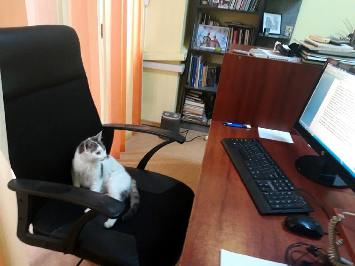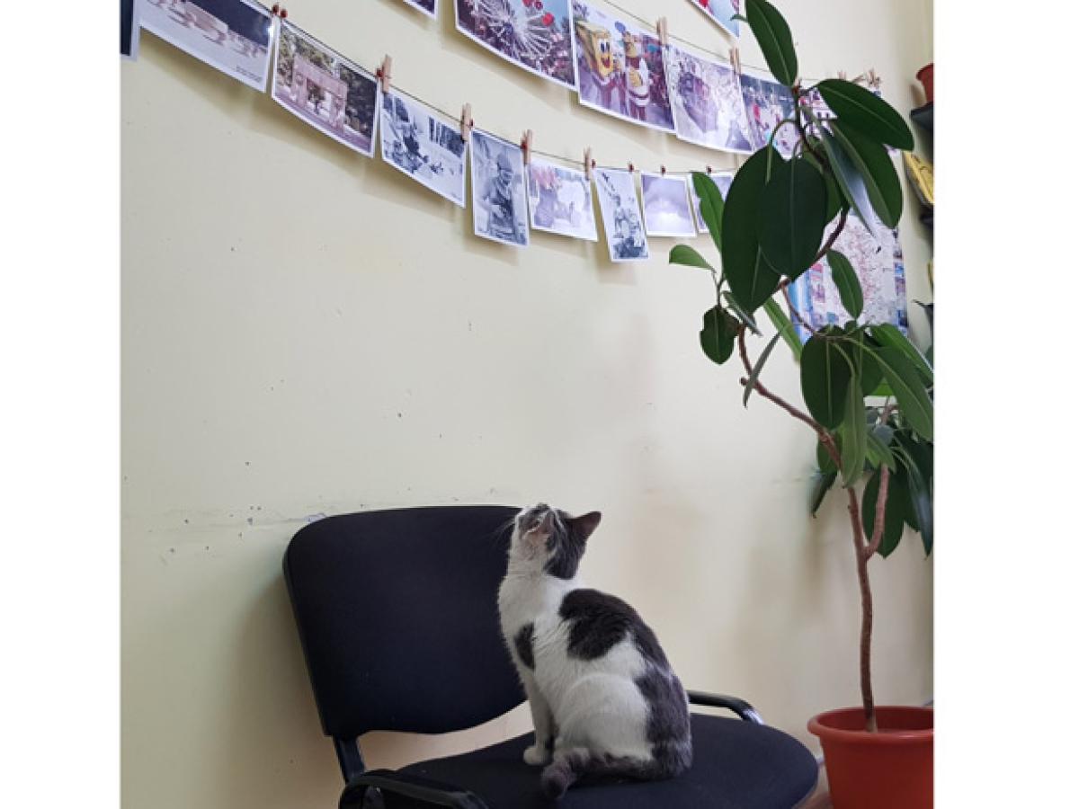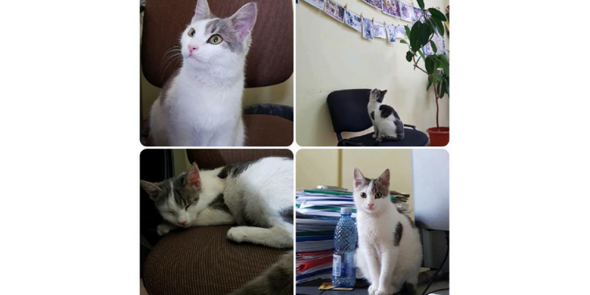 A doua zi dimineaţă, am avut însă noroc. Hoinărind prin Centrul Vechi, am văzut o clădire mare, frumoasă, pe strada Mihai Eminescu. La scurt timp a ieşit cineva şi a lăsat uşa deschisă. Ceva m-a atras acolo, aşa că am intrat repede înăuntru. Am văzut nişte scări mari şi am urcat. Am ajuns la etajul II, acolo unde aveam să aflu că îşi are sediul redacţia cotidianului “Obiectiv”. În sfârşit, căldură! Am intrat într-un birou şi, când m-a văzut, Silvia a venit şi m-a mângâiat. Cred că m-a plăcut din prima clipă, căci m-a lăsat să stau la ea în birou. Apoi a venit Monica şi mi-a zis că sunt cea mai frumoasă pisică. Să ştiţi că noi, pisicile, înţelegem ce vorbiţi voi, oamenii. Am auzit-o pe Monica spunând că aş putea să stau la ei, că vor avea grijă de mine. Şi am rămas!
