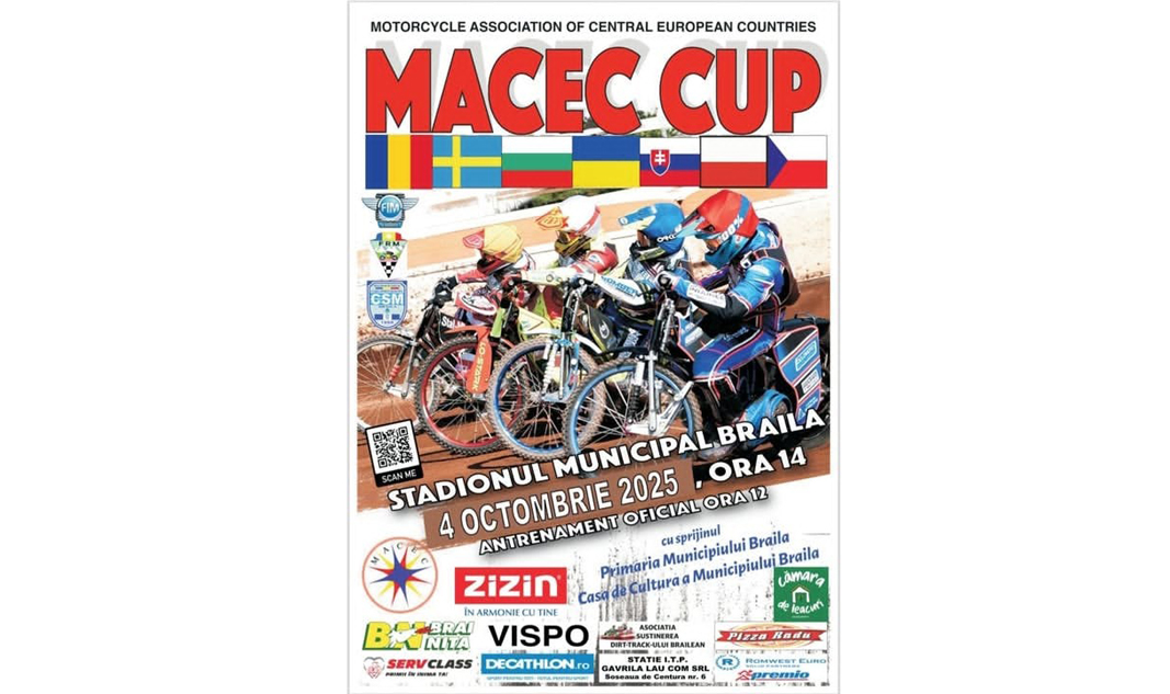 Sâmbătă, 4 octombrie, Brăila va fi gazda unei competiții europene de dirt track și anume Cupa MACEC, eveniment organizat de Federația Internațională de Motociclism, Federația Română de Motociclism și CSM Brăila.