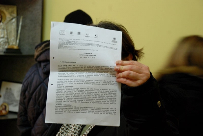 Procedurile greoaie de lucru cu banii europeni continuă să lase urme la nivel de Brăila. De curând, câteva persoane care au absolvit cursuri IT (competenţe informatice) în cadrul unui proiect cofinanţat din Fondul Social European prin Programul Operaţional Sectorial Dezvoltarea Resurselor Umane (POSDRU) 2007 - 2013 ne-au sesizat faptul că nu şi-au luat subvenţiile europene de câte 300 de lei, dar nici n-au semnat contractele de subvenţionare, ci doar nişte contracte de formare profesională cu valoare "0" trecută ca atare în document, la punctul 4. Vorbim în cazul de faţă de 26 de persoane cu vârste între 27 şi 62 de ani.