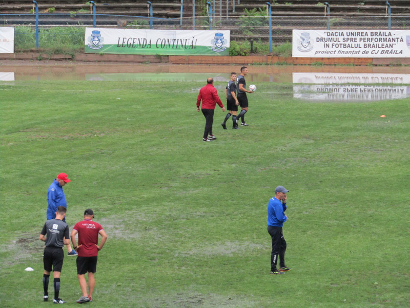 Însă partida nu a mai avut loc deoarece, cu jumătate de oră înainte de startul jocului, o ploaie torențială a acoperit suprafața de joc de la Municipal.