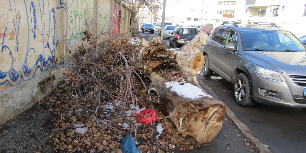 Furtuna fără precedent din luna august a anului trecut a făcut prăpăd în Brăila, prin arborii puşi la pământ şi maşinile avariate. Aşa cum s-a întâmplat şi pe strada Transilvaniei, în apropiere de Şoseaua Râmnicu Sărat. “Totul a început cu un vuiet puternic, de credeai că vine sfârşitul lumii. Și imediat alt zgomot înfricoşător, din cauza prăbuşirii de-a curmezişul străzii a unui plop uriaş şi uscat. A fost smuls din rădăcina aflată la suprafaţa pământului şi aruncat peste gardul foarte solid, din beton, de la fostul Laminor nr. 1. În căderea sa, plopul a avariat două autoturisme parcate pe carosabil, un stâlp metalic de iluminat de pe trotuarul opus, iar o maşină aflată în mers a scăpat uşor: crengile s-au oprit pe capotă, după care şoferul le-a îndepărtat şi a plecat mai departe. Apoi, nişte muncitori au aşezat copacul pe lungimea trotuarului, iar după un timp au venit nişte persoane care au tăiat cu drujba crengile bune de foc. Iar de atunci, până astăzi, nimeni nu a mai venit să ridice şi trunchiul gros, putrezit al copacului. Şi uitaţi, încă doi plopi cât toate zile, aflaţi dincolo de gard, pot cădea la o furtună mai puterică”. Relatarea este a unui comerciant din zonă, care ne arată şi cablurile căzute de atunci la pământ, nişte pubele pline de gunoi şi resturi alimentare (“de la o şaormerie”, ne spune) aflate pe un gang, iar noi revedem mizeria cruntă şi gunoaiele de circa jumătate de metru, din incinta fostului dispensar al uzinei. În ultima vreme, reporterii noștri au relatat degeaba despre acest focar pestilenţial de infecţie şi poluare a mediului de pe strada Transilvaniei, clădirea cu pricina devenind şi toaletă publică pentru boschetari,beţivi şi nesimţiţi.