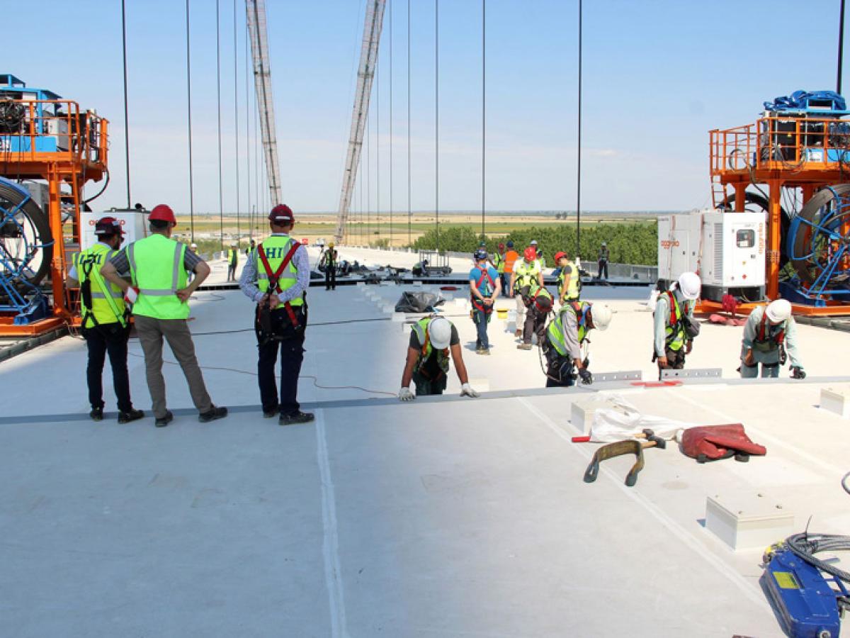 * în momentul de față, Dunărea poate fi traversată pe pod, însă doar ”la picior” * mai sunt de parcurs câteva etape până când va putea fi deschis circulației auto: sudarea finală a tablierilor metalici, hidroizolarea și turnarea asfaltului * în final, vor fi montați parapeții, se vor trasa marcajele rutiere, va fi montat sistemul de iluminat * după toate aceste operațiuni, urmează probele de siguranță, iar podul va putea fi inaugurat * termenul limită: luna decembrie a acestui an * constructorii dau asigurări că se fac eforturi ca până atunci să fie gata și drumurile de legătură