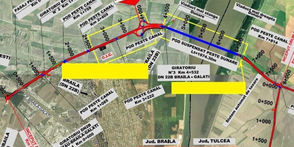 * anunțul a fost făcut, joi, de către ministrul Transporturilor, Cătălin Drulă, pe pagina sa de Facebook * acesta a anunțat că urmează, în curând, și restul drumurilor care au legătură cu podul suspendat peste Dunăre de la Brăila * europarlamentarul Mihai Tudose nu s-a arătat impresionat de anunțul lui Drulă, dar recunoaște că e bine măcar că lucrurile au început să se miște * podul se află și în atenția parlamentarilor AUR Brăila, care au făcut o vizită recentă pe șantier, pentru a urmări stadiul lucrărilor, dar și pentru a afla unde s-au blocat lucrurile în privința drumurilor de legătură