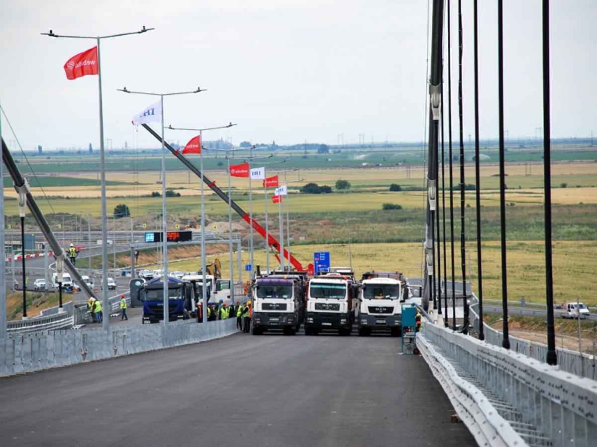 În ceea ce privește marea inaugurare, se vehiculează de ceva vreme data de 27 iunie, atunci când oficiali de la București și reprezentanți ai Uniunii Europene ar urma să vină să taie panglica, pentru a se da drumul circulației pe podul propriu-zis și pe porțiunile de drum care sunt deja gata. Pe șantier mai sunt, însă, detalii de pus la punct, iar reprezentanți ai constructorului cu care au discutat reporterii noștri, ieri, la fața locului, s-au arătat sceptici că totul va fi gata în următoarele două săptămâni. Cu alte cuvinte, e foarte posibil ca inaugurarea să nu se facă marți, 27 iunie, ci să se amâne pentru o dată ulterioară. Rămâne, însă, de văzut cum vor evolua lucrurile...