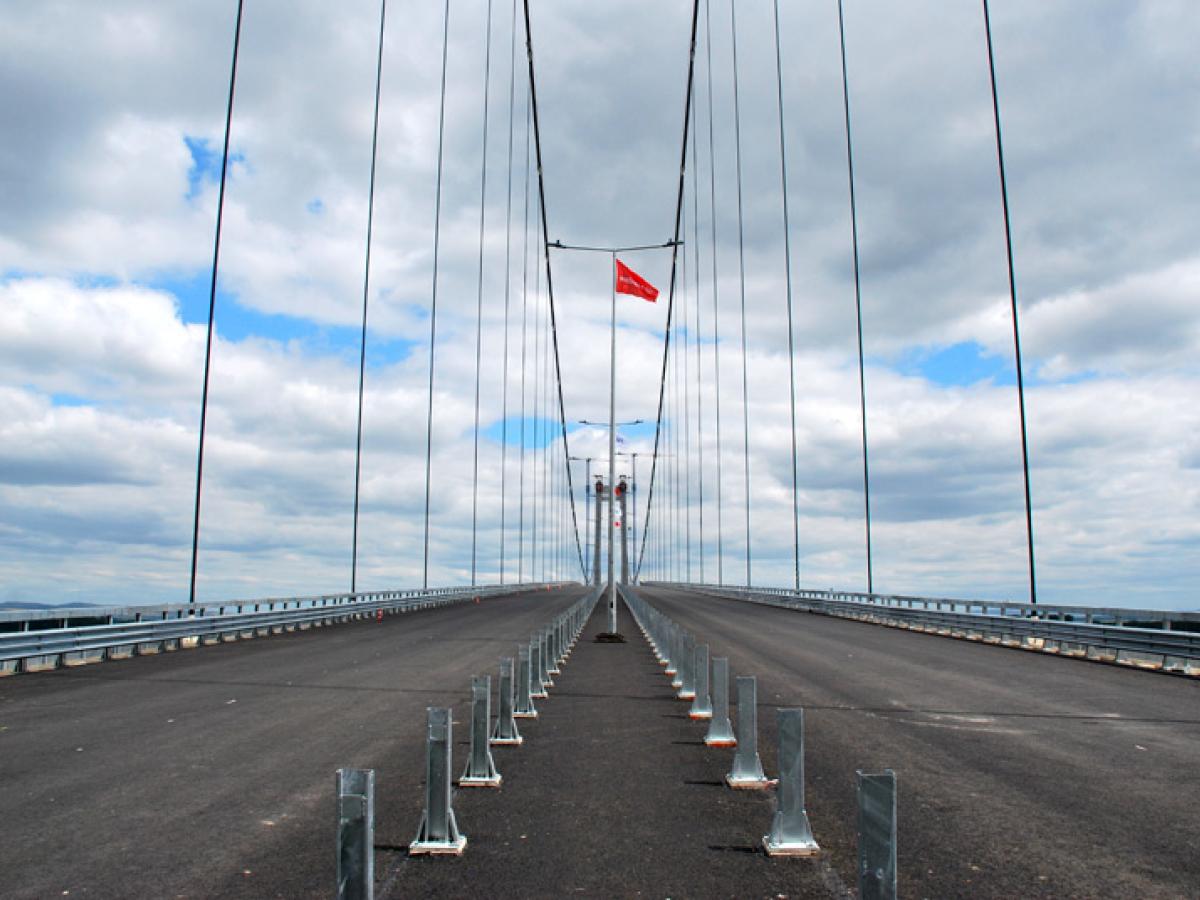 Deocamdată, ieri încă se lucra la pregătirea pentru asfaltare a ultimei porțiuni din rampa de acces de pe malul brăilean. Este vorba despre un segment de circa 150 metri lungime, care încă e la stadiul stratului de pietriș. Ni s-a spus, totuși, că până la finalul acestei săptămâni se va turna asfalt și pe această porțiune. În rest, se mai lucrează la montarea parapeților care vor separa cele două sensuri de mers. Apoi vor trebui trasate marcajele rutiere. Se mai lucrează în prezent la vopsirea turnurilor de pe ambele maluri, precum și la montarea iluminatului arhitectural. De asemenea, se mai montează balizajul aeronautic și naval. Toate aceste detalii trebuie puse la punct, la podul propriu-zis, înainte de inaugurare.