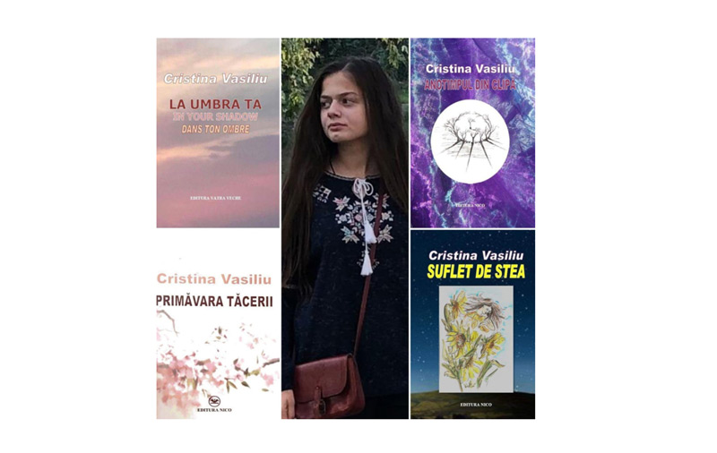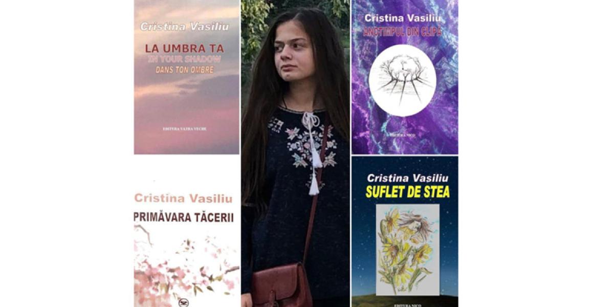 La vârsta de 4 ani a învăţat să citească, la 5 ani să scrie, la 6 ani a compus prima poezie, iar la 9 ani vedea lumina tiparului prima ei carte, initulată „Suflet de stea”. Vorbim despre Cristina Gabriela Vasiliu, o elevă de excepţie a Colegiului Naţional „Gh. M. Murgoci” şi o tânără poetă care, la doar 15 ani, vârstă pe care o împlineşte chiar astăzi, a publicat patru cărţi de poezii: „Suflet de stea” (2015), „Anotimpul din clipă” (2017), „Primăvara tăcerii” (2018) şi, recent, volumul „La umbra ta”, care este o ediţie trilingvă, poeziile fiind scrise în limba română şi traduse în engleză şi franceză.