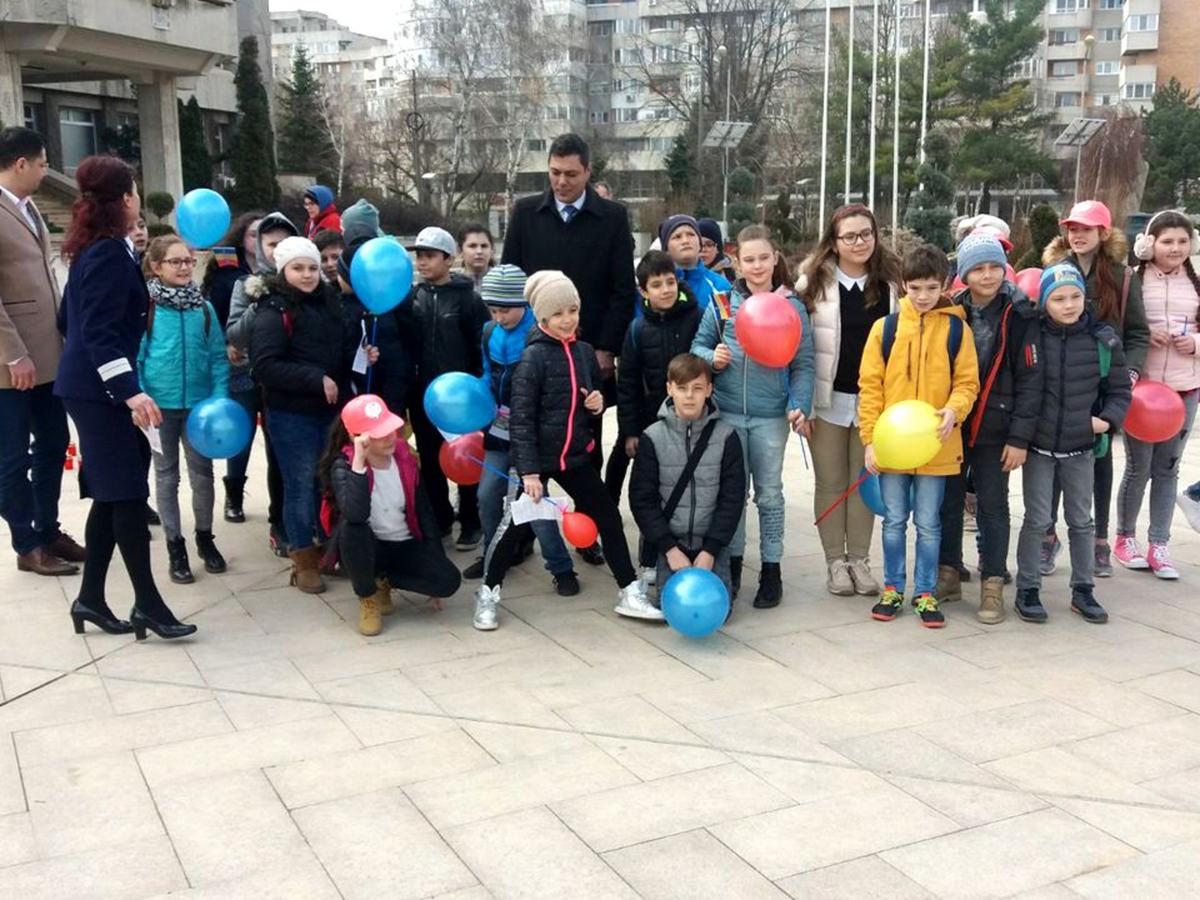 Platoul Primăriei Municipiului Brăila a fost animat de sute de baloane tricolore şi de uimirea şi bucuria copiilor pentru surprizele pregătite de poliţişti la ceas aniversar.
