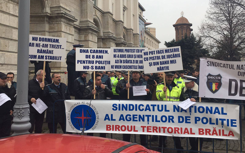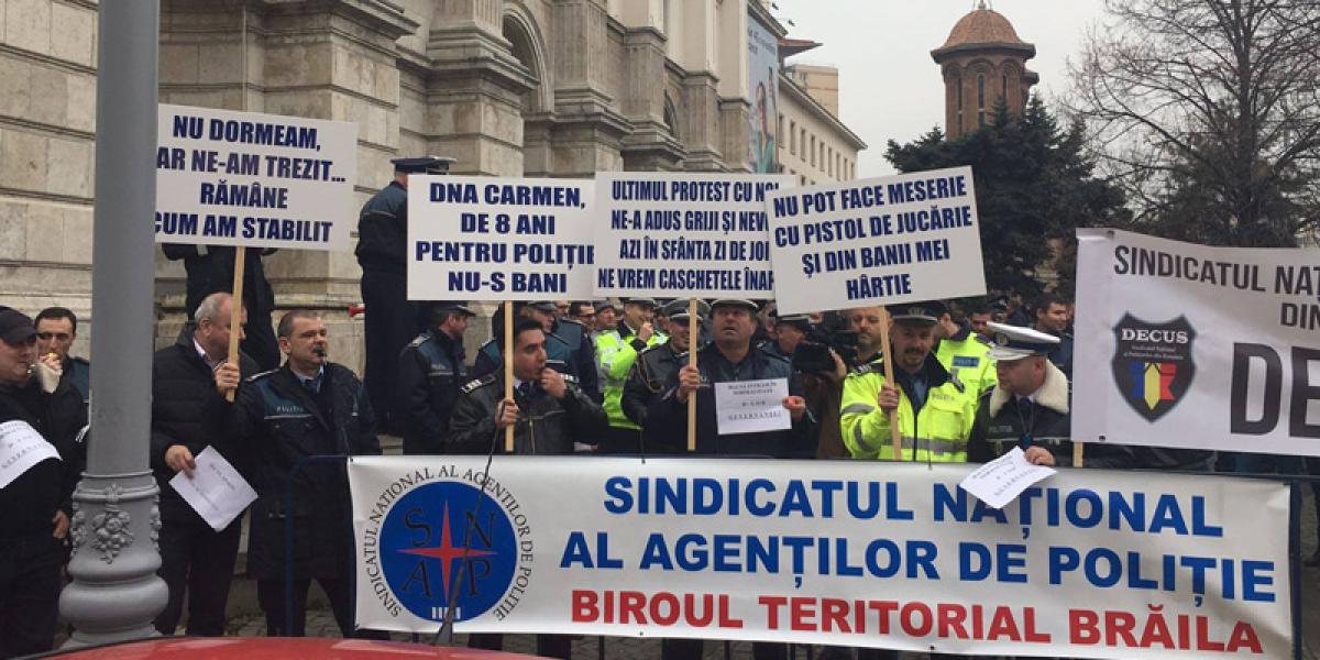 Bine, în Poliţia Română nu cred că o să se înscrie niciodată vreun olimpic la Matematică sau un băiat medaliat la concursurile internaţionale de Lego, aşa că nu trebuie să avem pretenţii prea mari de la actualii şi viitorii poliţişti ai neamului. Bre, dar când am văzut poza asta apărută în ziarul Obiectiv de joi, am zis că, uite, poliţistul de grădiniţă, ăla jucat de Arnold, e viu şi nevătămat, ba mai nou participă şi la proteste. De ce zic treaba asta? Păi, voi aţi citit ce sloganuri au fost în stare să debiteze poliţiştii? I-auzi unu’: „Nu dormeam, dar ne-am trezit... Rămâne cum am stabilit”. Este că e de mare angajament, că e scos din puţul gândirii de purtător de caşchetă? Dar ăsta e şi mai tare: „Nu pot face meserie cu pistol de jucărie şi din banii mei hârtie”.
