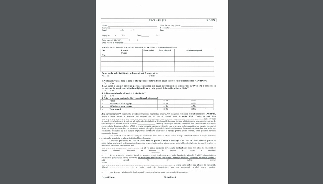 Pentru că tot mai mulţi români încearcă să păcălească autorităţile la intrarea în ţară, completând cu date false formularul pentru a evita perioada de carantină, poliţiştii transmit că acest lucru reprezintă infracţiune şi se pedepseşte conform Codului Penal.