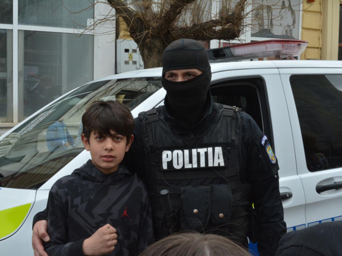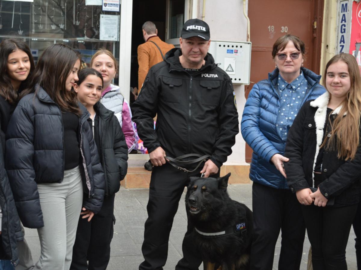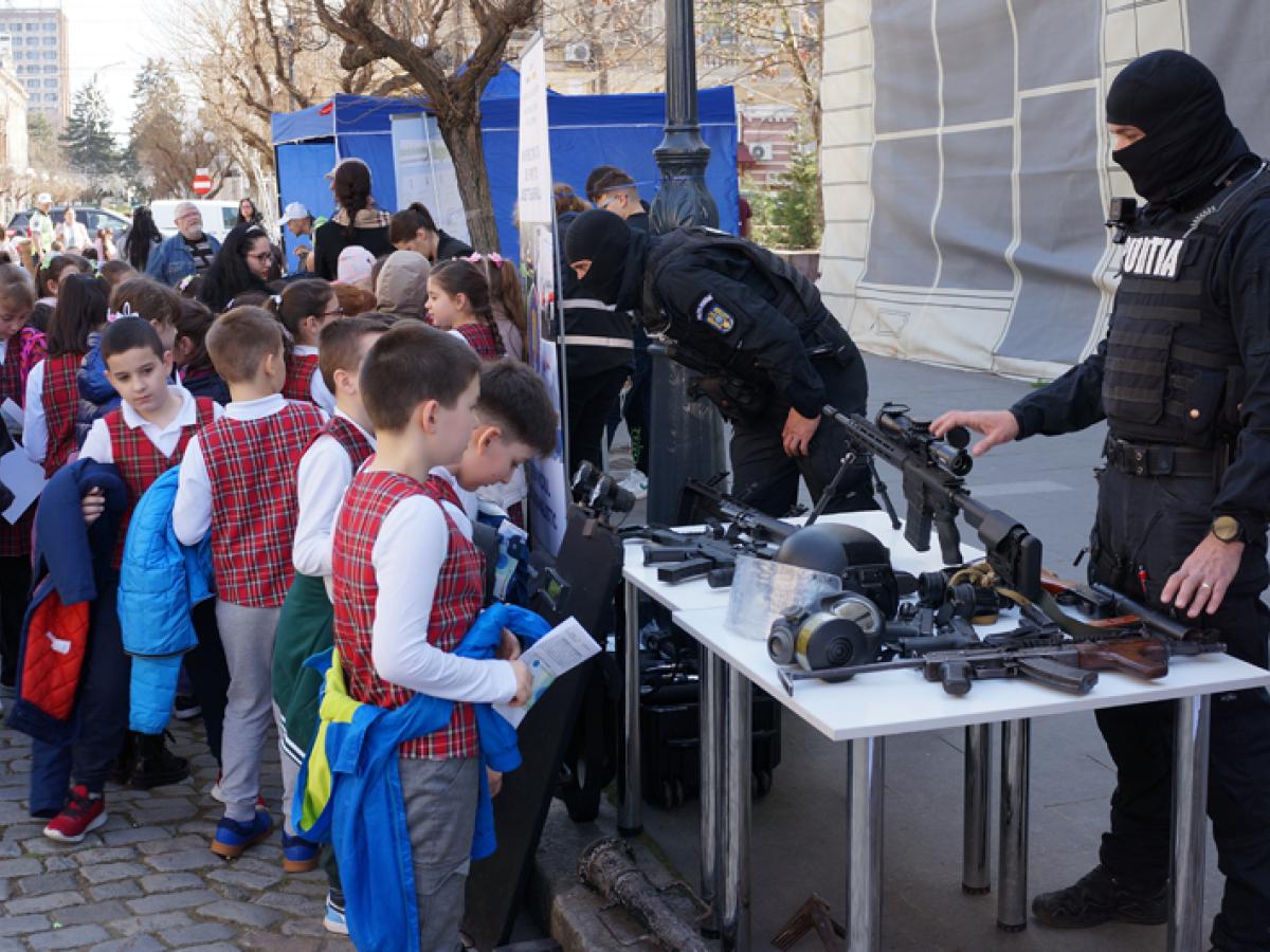 • marți, 25 martie, Inspectoratul de Poliție Județean Brăila a organizat evenimentul Ziua Poliției Române pe strada Mihai Eminescu, iar elevii au venit în număr mare pentru a-i sărbători pe oamenii în uniformă • micii vizitatori au urcat în mașinile de poliție, au studiat pistoalele și armele prezentate de luptătorii Serviciului Acțiuni Speciale, au trecut prin Laboratorul de Educație Rutieră, dar marea atracție a fost polițistul patruped ”Gipsy” • au fost și tineri care au studiat ofertele educaționale privind cariera de polițist, iar unii au spus că și-ar dori să intre în această structură