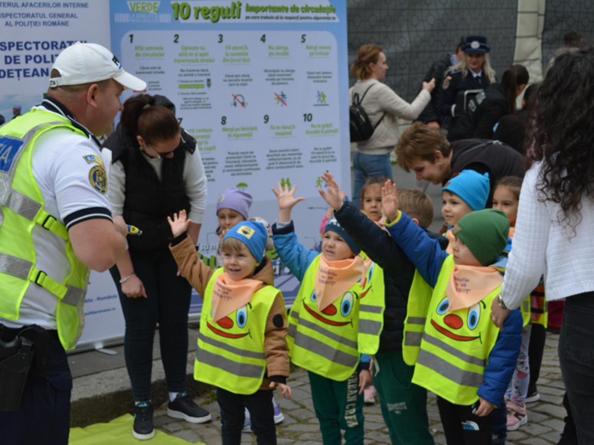În plus, copiilor le-au fost oferite orare, rigle precum și stegulețe tricolore, diferite materiale tematice realizate, mini semafoare, indicatoare rutiere, dar și pliante cu informații și recomandări pentru o copilărie în siguranță.