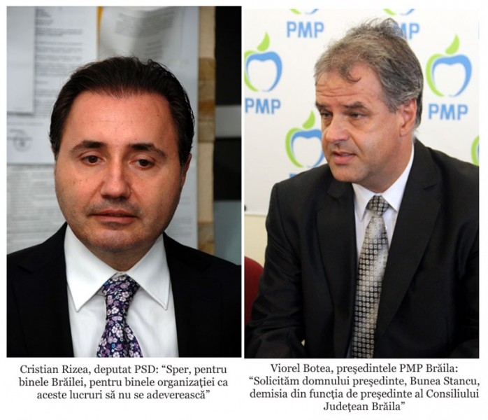 Tot ieri, în cadrul unei conferinţe de presă la sediul partidului, liderul PMP Brăila, Viorel Botea a ţinut să facă un comentariu pe tema acţiunii derulate de procurorii DNA în judeţul nostru. Acesta şi-a manifestat speranţa că cercetările efectuate vor reliefa elementele negative din administraţia brăileană. "Având în vedere faptul că DNA-ul anchetează în momentul de faţă presupuse fapte de corupţie privind achiziţiile publice la Brăila, acte de corupţie care au fost prezentate de presă, solicităm domnului preşedinte, Bunea Stancu, demisia din funcţia de preşedinte al Consiliului Judeţean Brăila. De asemenea, solicităm demisia domnului Florin Mija din funcţia de vicepreşedinte al CJ. Partidul Mişcarea Populară este partidul care, de la bun început a încercat să arate că în Brăila, economia nu merge din cauza faptului că toate aceste acţiuni nu au făcut altceva decât să ducă la ruinarea brăilenilor, a tuturor firmelor particulare, la ruinarea în general a activităţii economice din Brăila. Fapt care începe, câte un pic să apară la orizont. Sperăm că în perioada următoare, presupusele acte de corupţie vor fi prezentate aşa cum trebuie, vor fi verificate toate lucrurile care nu au fost în regulă care au dus la distrugerea vieţii fireşti a brăilenilor", a declarat Botea. Mergând pe aceeaşi linie, liderul PMP Brăila a ţinut să îi transmită o rugăminte lui Gheorghe Bunea Stancu. "Având în vedere că domnul Bunea Stancu a afirmat că în momentul în care va fi anchetat sau ridicat de DNA, va trage după sine foarte multe persoane care cunosc activităţile care s-au derulat, aş dori să nominalizeze aceste persoane dar şi ce activităţi au desfăşurat împreună", a conchis Botea.