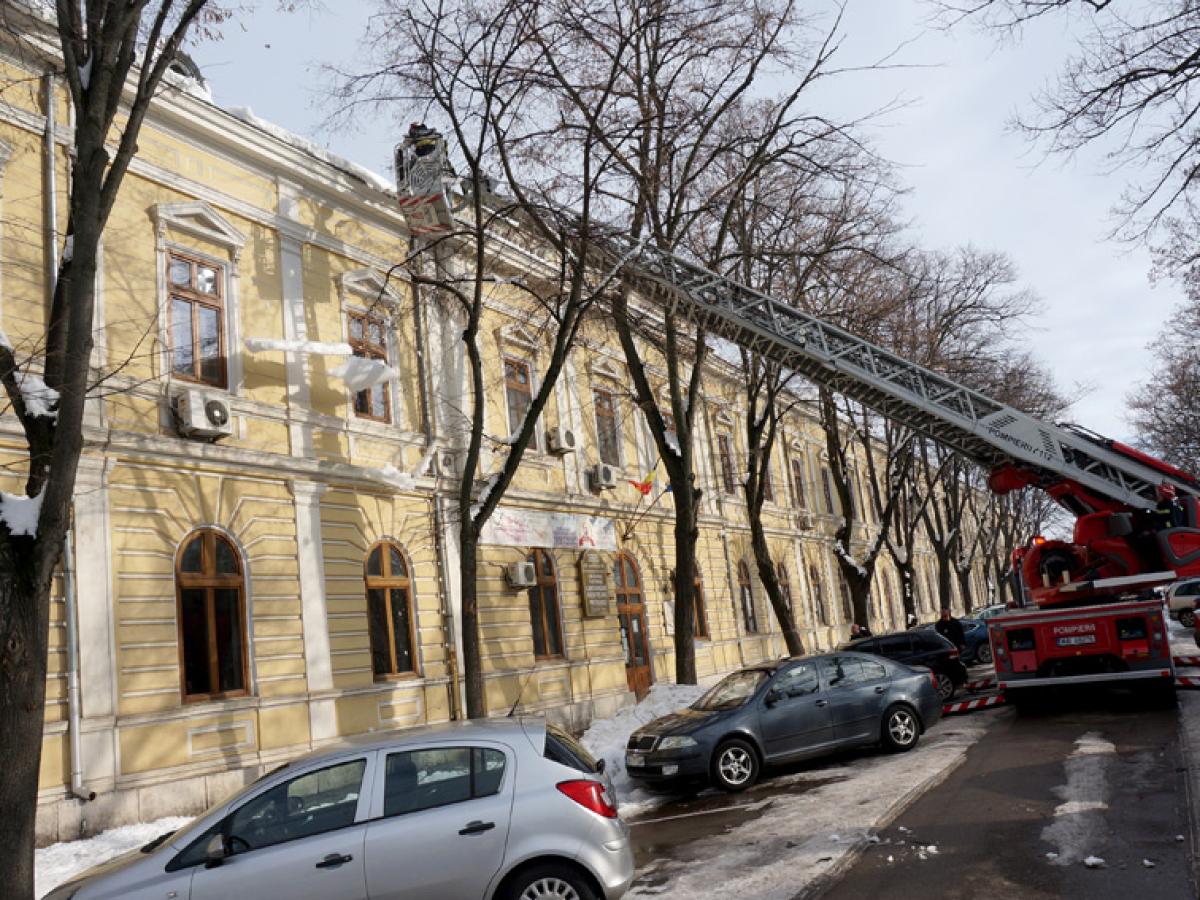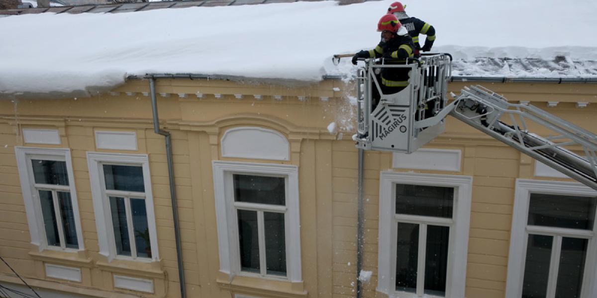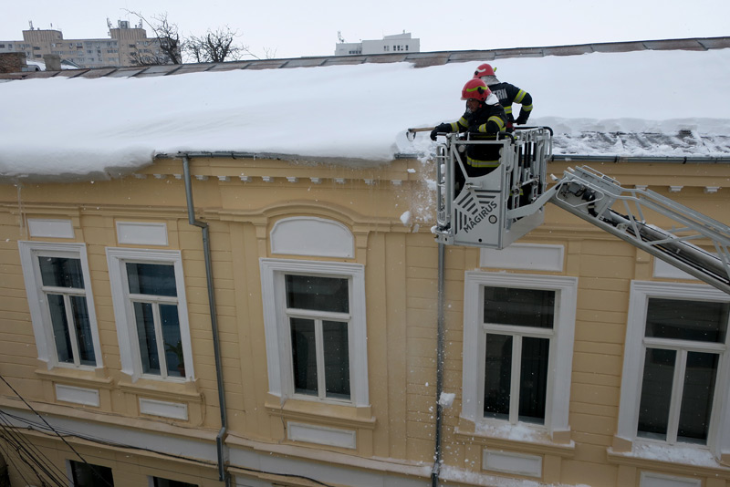 Pompierii brăileni acționează non-stop, de mai multe zile, la înălțime, pentru îndepărtarea mormanelor de zăpadă și a țurțurilor de gheață care atârnă, amenințători, de pe acoperișurile clădirilor mai înalte din zona Centrului Istoric al orașului, precum și din zonele cu trafic pietonal intens. Ieri, o echipă a Inspectoratului pentru Situații de Urgență (ISU) „Dunărea” Brăila a îndepărtat, din nacelă, gheața și zăpada de deasupra clădirii vechi de mai bine de un secol situată la intersecția Străzii Mihai Eminescu cu Petru Maior - proprietatea Primăriei Municipiului Brăila - folosindu-se de autospeciala de intervenție și salvare la înălțime.